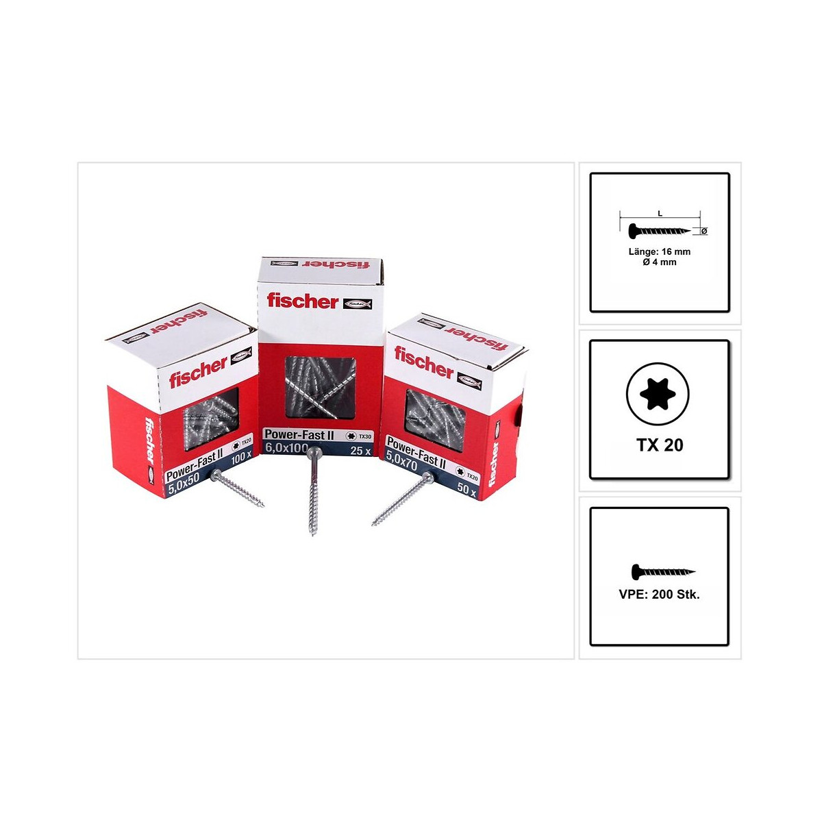 Contenu de la livraison: - 200x Fischer Vis pour panneaux de particules Power-Fast II FPF II 4.0x16 mm (670234) Description du produit: Les vis pour panneaux de particules conviennent pour la fixation d'éléments porteurs dans des joints en bois revêtu, en bois dur, en bois tendre et en bois. Des vis entièrement filetées sont recommandées pour la fixation de composants minces et dans des matériaux à base de bois moins solides (par exemple, le bois tendre). Les vis à tête cylindrique (tête ronde) conviennent particulièrement aux connexions métal-bois et ne peuvent pas être fraisées. La pointe de la vis avec les trois nervures garantit un comportement de morsure rapide et un pré-fraisage. Les vis pour panneaux de particules ont un comportement d'écart considérablement réduit par rapport aux vis disponibles dans le commerce. Le Power-Fast II avec revêtement en cire haute performance réduit le couple de vissage et permet un vissage près du bord sans aucun problème. La géométrie sous la tête avec un double cône optimisé et des poches fraisées garantit moins de surfaces en bois déchirées et moins de dommages aux composants métalliques. Et donc pour un meilleur aspect et sensation des surfaces. L'augmentation du pas de filetage réduit considérablement le temps de vissage et permet un assemblage rapide. Les nervures de la fraise en bout, associées à la géométrie de la fraise, réduisent sensiblement la résistance au vissage. Cela signifie que plus de vis peuvent être vissées avec une durée de vie de la batterie plus longue et moins d'effort. La nouvelle géométrie de la fraise permet un broyage précis et un travail optimal de la farine de bois. Cela signifie que de petites distances au bord et au centre sont possibles. Les Power-Fast II sont des vis avec des charges testées dans la cheville fischer (par exemple DUOPOWER et UX). Le zingage galvanique, passivé bleu, ne contient aucun composant de chrome VI et est donc très écologique. Le nouveau Power-Fast II avec sa géométrie de vis unique combine le plus haut savoir-faire technique avec une excellente conception. Power Fast II sont les vis pour panneaux de particules pour un traitement rapide et flexible. Spécifications techniques: Numéro du fabricant: 670234 Diamètre: 4,0 mm Longueur: 16 mm Longueur du filetage: 11 mm Forme de la tête: Pan Head Type de filetage: filetage complet Entraînement: étoile intérieure TX20 Matériel: acier Revêtement: Galvanisé, passivé bleu