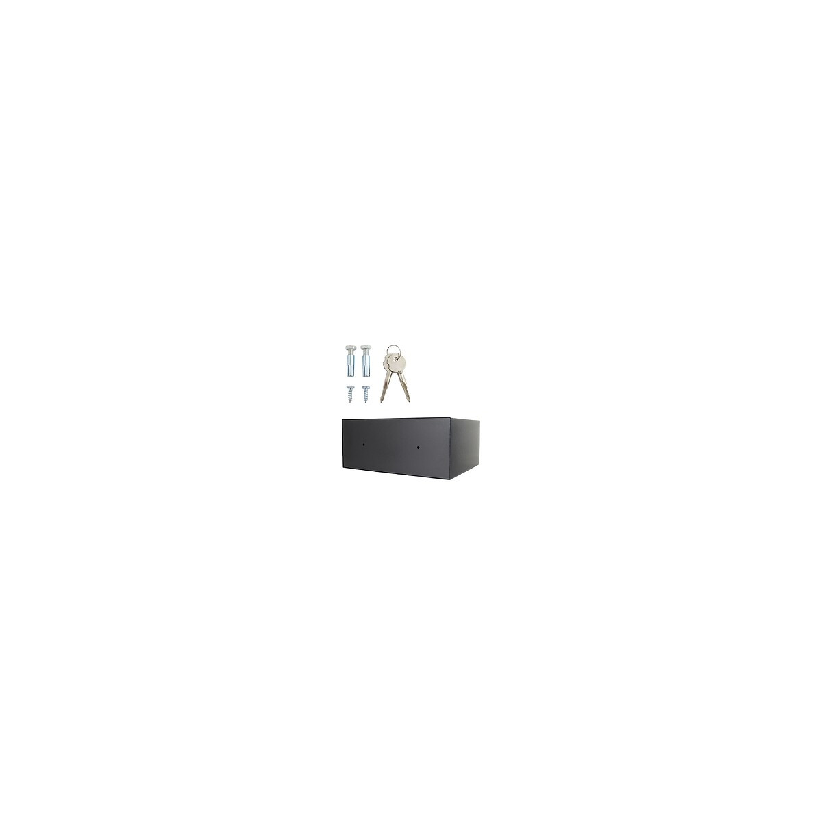 Coffre-fort à simple paroi Tiroir 4 mm (face avant) Épaisseur du tiroir 50mm (avant) Corps 1,5 mm Feu pli 2 boulons diamètre 17mm rails télescopiques stables les boulons s'ouvrent et se ferment automatiquement (pas de poignée tournante) Dégagement : L 380 x P 180 mm Serrure électronique : ouverture d'urgence électronique (code maître) et ouverture d'urgence mécanique (double clé) Fonctionnement sur piles avec des piles standard de 1,5 V. (non inclus dans la livraison) chiffres d'affichage rouges Trous 2 x dans la paroi arrière et 4 x au sol Matériel d'ancrage inclus Le tiroir doit être retiré avant le perçage. tapis de sol bleu Dimensions extérieures mm (H x L x P) :200 x 470 x 370 Dimensions intérieures mm (H x L x P ):125 x 380 x 300 Poids : 15 Kg Volume:14 litresSpécifications techniques