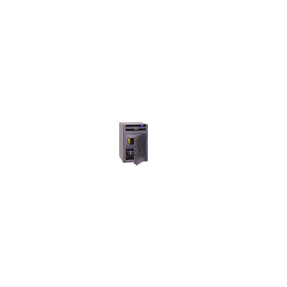 Phoenix Caisse de dépôt SS0998KD Taille 3 Coffre de sécurité avec serrure à clef Coffre fort de dépôt d'espèces à chargement avant sécurisé pour une gestion de trésorerie de 24 heures. PROTECTION SECURITE: Recommandé pour une valeur assurable de €3,000 d'espèces ou €30, 000 d'objets de valeur. VERROUILLAGE: Equipé d'une serrure à clef de haute sécurité à double panneton VdS Classe 1 et fourni avec deux clefs. FACILITE DE DEPOT: Equipée spécialement par Phoenix d'un plateau déflecteur à inclinaison pour assurer que le contenu ne puisse pas être repêché. CONSTRUCTION: La porte est construite en plaque d'acier de 12mm et les parois de 6mm. FIXATION: Prêt pour un fixation au sol en ciment avec boulonnerie fournie. COULEUR/FINITION: Finition par une peinture de haute qualité anti-rayures RAL9003 Blanche. Valeur assurable (Argent liquide / Objet de valeur):€3,000.00 / €30,000.00 Garantie:Garantie de 2 ans sur site contre les défauts de fabrication. Diamètre:Vierge Capacité:71 Litres Couleur:Blanc Construction:Porte en acier de 12mm d'épaisseur avec un corps en acier de 6mm Dimensions Extérieures ( HXLXP):760 mm x 508 mm x 508 mm Dimensions Intérieures ( HXLXP):320 mm x 495 mm x 450 mm Boulons de verrouillage live:3 Verrouillage:Clef Numéro RAL:RAL9003 Poids:130 kg Quantité de boulons:2 Fixation:SolSpécifications techniques