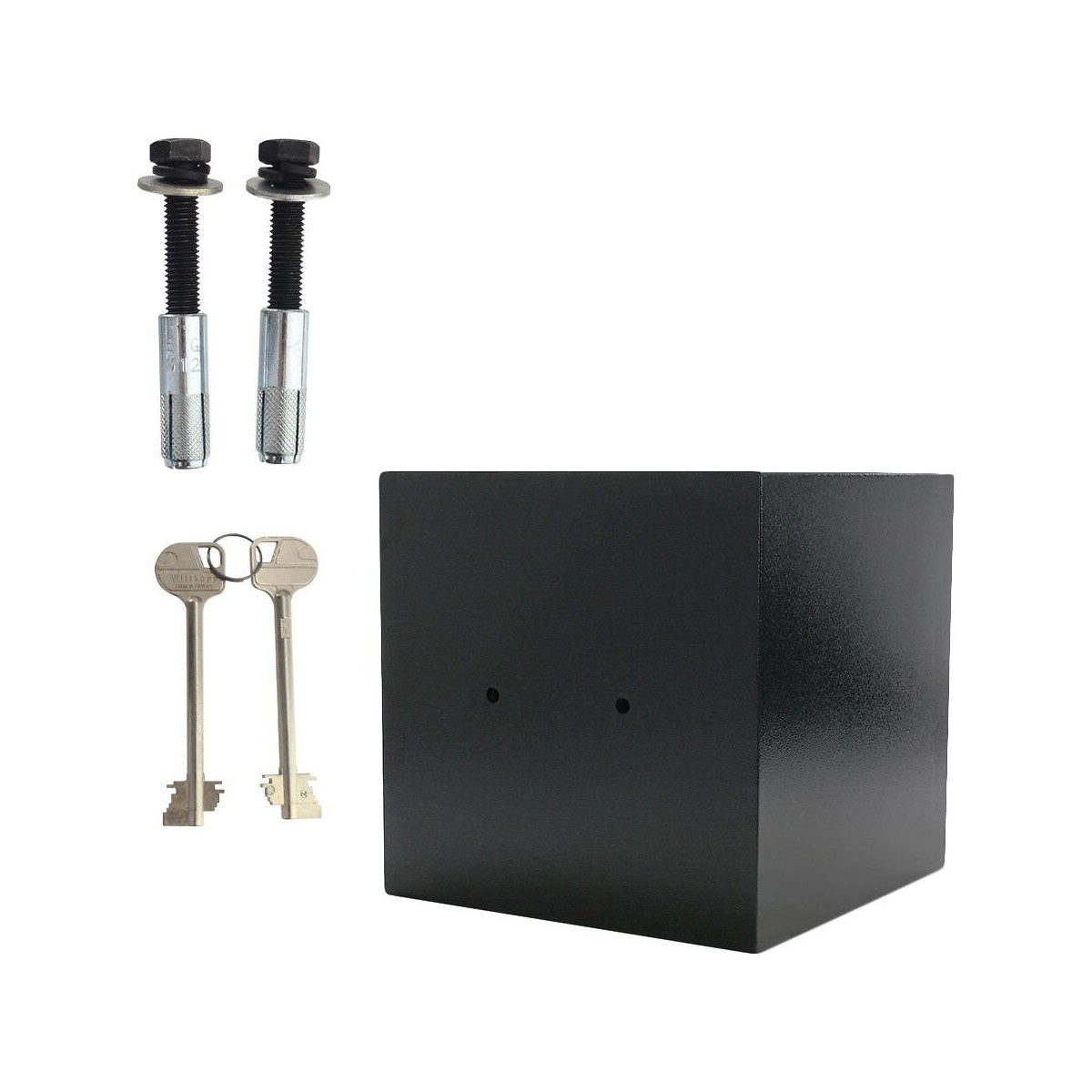EN-1 selon CSN EN-1 1143-1 SZU / CZ Serrure haute sécurité à double panneton EN 1300 classe A avec 2 clés Poignée coquille Profondeur extérieure +15 mm par ferrure rapportée La porte se ferme avec 5 pênes - verrouillage par pêne sur trois côtés corps à parois multiples Epaisseur du vantail 10 mm Angle d'ouverture de la porte 90 degrés Charnières qui disparaissent Coupe-feu dans l'ouverture de la porte Serrure avec protection anti-perçage 1 étagère Espace pour 4 dossiers 2 trous percés dans la paroi arrière et 2 trous dans le fond, Ø 15 mm Matériel de montage inclus Les coffres-forts de moins de 1000 kg doivent être ancrés dans un élément solide ! Dimensions extérieures mm (H x L x P) :435 x 435 x 445 Dimensions intérieures mm (H x L x P) :370 x 370 x 355 Poids: 55 kg Volume:49 litresSpécifications techniques