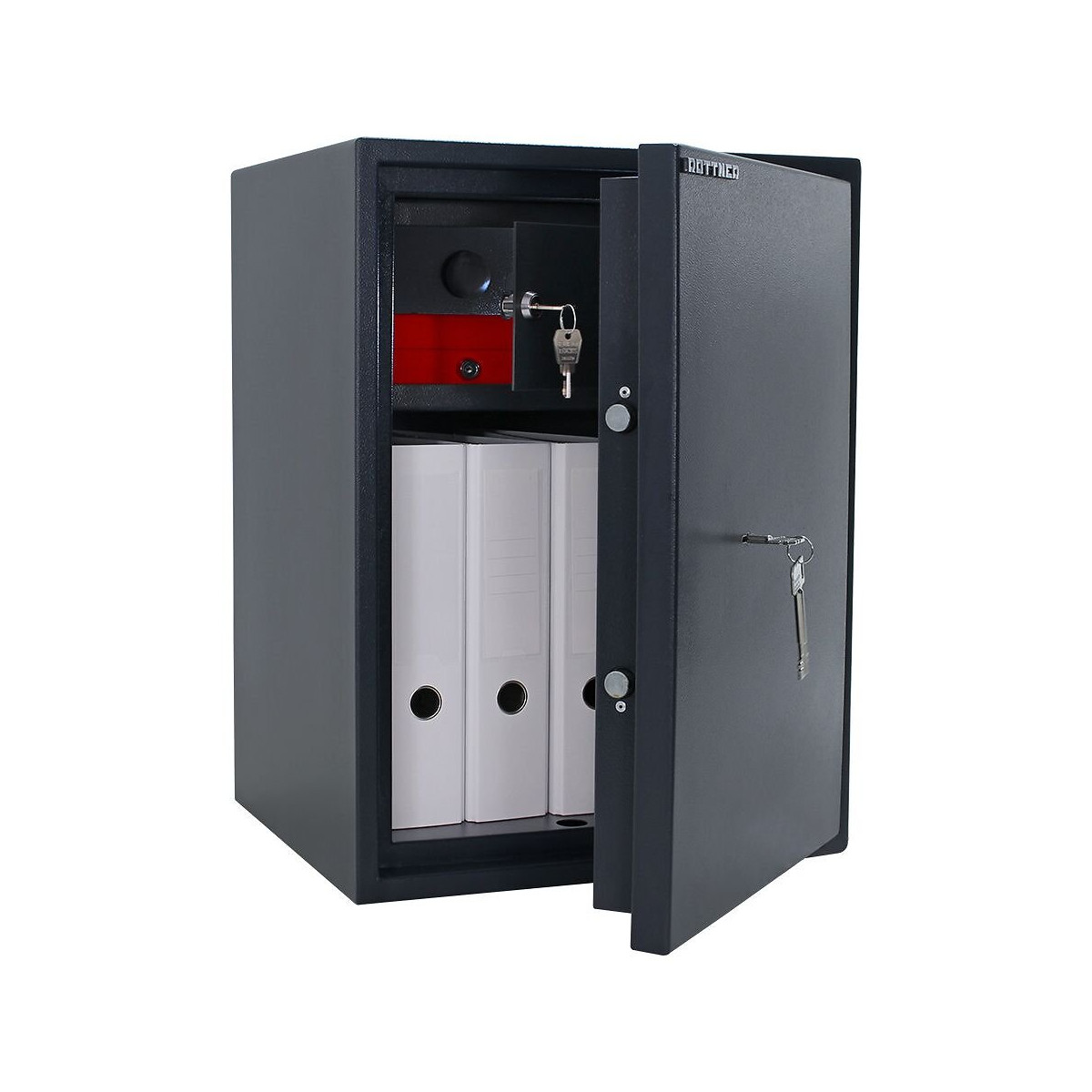 Résistance à l'effraction : S-2 selon EN 14450 (ECB-S) Double panneton EN classe 1 sans matériel avec 2 clés Armure de protection de serrure en acier au manganèse à haute teneur en carbone corps et porte à double paroi Epaisseur du vantail : 70 mm Serrure à pêne robuste à 3 côtés avec 4 boulons pli du feu tout autour Serrure avec protection anti-perçage charnières internes - angle d'ouverture de 90 ° 1 étagère, réglable 1 coffre-fort intérieur, verrouillable séparément avec serrure à cylindre / 2 clés 1 trou pré-percé dans la paroi arrière, Ø 13 mm 2 trous dans le fond Ø 13 mm Matériel de fixation inclus dans la livraison Les coffres-forts de moins de 1000 kg doivent être ancrés dans un élément solide ! Dimensions extérieures mm (H x L x P) :600 x 445 x 400 Dimensions intérieures (mm) H x L x P :520 x 365 x 295 Poids : 43 Kg Volume:56 litresSpécifications techniques