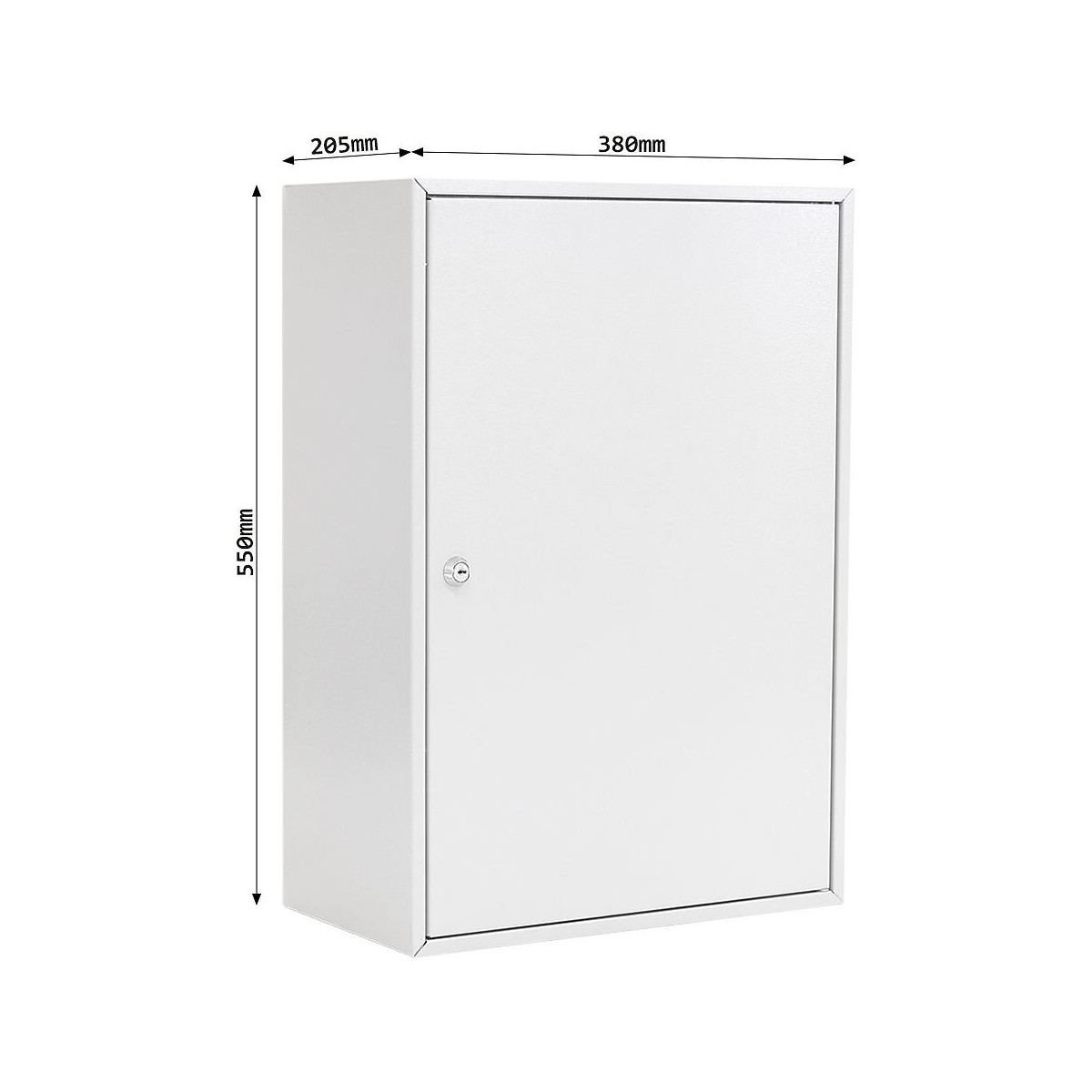 Serrure à cylindre, 2 clés La description: Corps et porte en tôle de haute qualité, registre de clé pivotant deux partitions Poudre de plastique enduite de gris clair 300 porte-clés inclus gratuitement. Les bandes de crochets sont numérotées et réglables dans le système de crochets destiné au montage mural 4 trous dans la paroi arrière Ø 5,5 mm Le matériel de montage est inclus Dimensions extérieures mm (H x L x P) :550 x 380 x 205 Poids : 13.3 Kg Nombre de crochets:300 clés Volume:42,9 litresSpécifications techniques