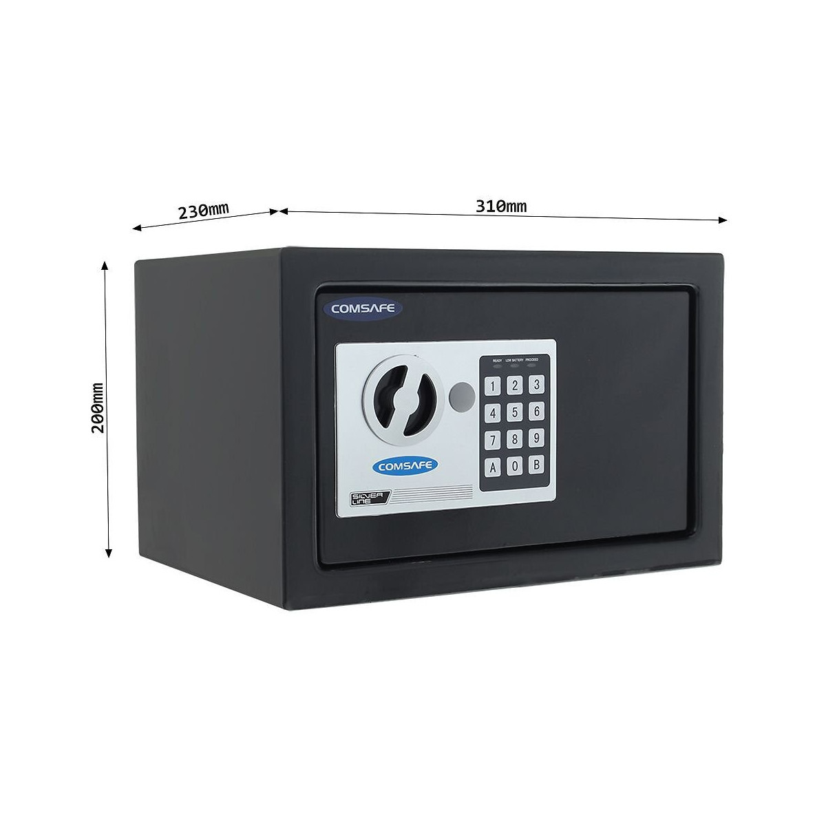 Serrure électronique avec 100 millions d'options de commutation (code utilisateur à 8 chiffres), sans afficheur Fonctionnement sur piles avec 4 piles AA de 1,5 volts (non incluses) ouverture mécanique d'urgence possible avec 2 clés Verrouillage mécanique corps simple paroi Corps 2 mm Feuille de porte 4 mm Charnière invisible angle d'ouverture 90° Feu pli 2 trous dans la paroi arrière 2 trous au sol Matériel de fixation inclus dans la livraison avec insert en feutre Laqué noir - laque piano brillante Dimensions extérieures mm (H x L x P) :200 x 310 x 230 Dimensions intérieures (mm) H x L x P :195 x 305 x 175 Poids : 6 Kg Volume:10 litresSpécifications techniques