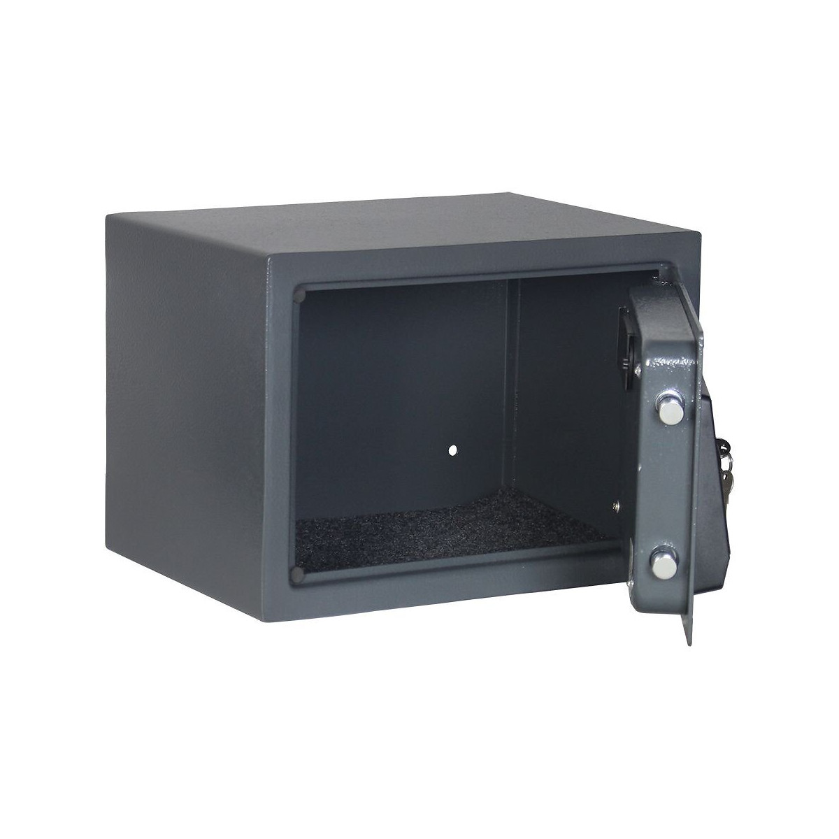 Serrure électronique avec 100 millions d'options de commutation (uniquement code utilisateur à 8 chiffres), sans affichage Fonctionnement sur piles avec 4 piles AA de 1,5 volts (non incluses) ouverture mécanique d'urgence possible, 2 clés incluses serrure mécanique corps simple paroi Épaisseur du corps 2 mm Epaisseur du vantail 3 mm Charnières cachées - angle d'ouverture de 90 ° 4 trous dans la paroi arrière Ø 8 mm 4 trous dans le fond Ø 8 mm Matériel de fixation (4 pièces) inclus dans la livraison avec insert en feutre Dimensions extérieures : 250 x 350 x 250 mm Dimensions intérieures : 240x 345 x 185 mm volume: 15 litres Poids: 6 kgSpécifications techniques