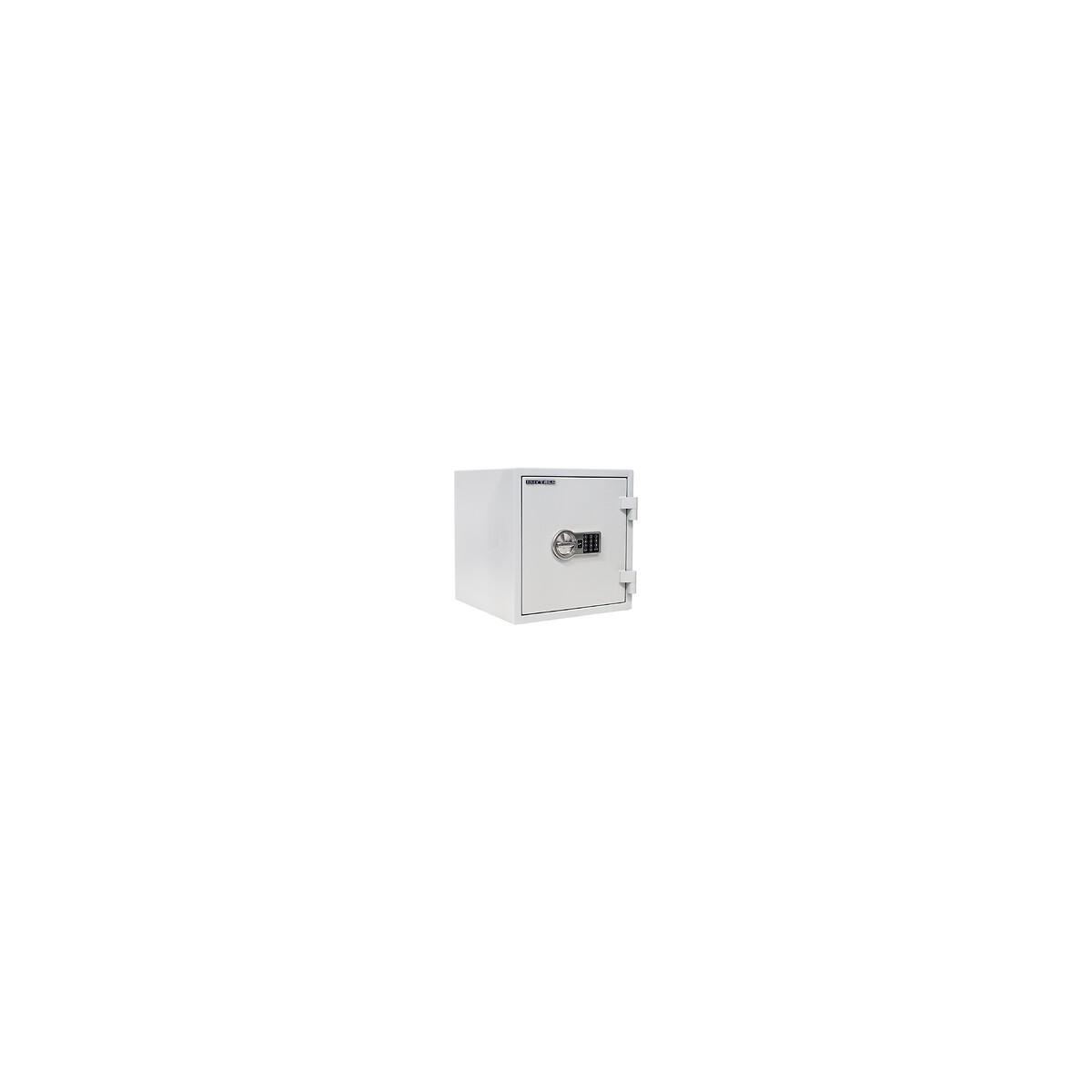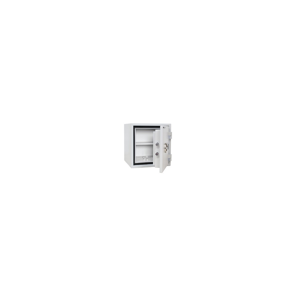 Serrure de sécurité avec poignée rabattable, électronique 9 codes utilisateurs possibles EN 1300, ECBS classe A (sans révision) contient une pile de 9 volts Foret de verrouillage protégé corps à double paroi Épaisseur de la porte : 92 mm Paroi latérale épaisse : 56 mm rempli de matériel spécial de protection contre l'incendie Charnières extérieures, angle d'ouverture 180 ° Fermeture à 3 côtés 4 boulons Sécurité anti-effraction : S2 selon EN 14450 (ECB-S) Sécurité incendie : LFS 30P selon EN 15659, protection incendie 30 min pour le papier une étagère 2 trous dans le fond (percés, Ø 15 mm) Matériel de fixation inclus dans la livraison Dimensions extérieures mm (H x L x P) :460 x 440 x 450 Dimensions intérieures mm (H x L x P ):330 x 330 x 300 Poids : 71 Kg Volume:33 litresSpécifications techniques
