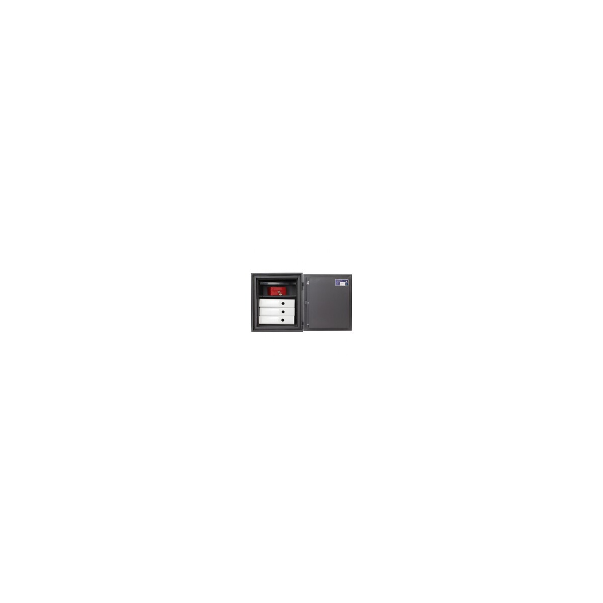 LFS 60P selon EN 15659 (ECB-S) 60min protection incendie pour papier selon ECB-S Serrure électronique, à piles avec 4 piles AA 1,5 V (hors pile) ouverture d'urgence électronique Poignée tournante 1 code maître et 1 code utilisateur Voyants LED Les crochets arrière fixent les côtés des charnières Compartiment à piles extérieur - indicateur d'avertissement corps à double paroi rempli de matériel spécial de protection contre l'incendie 1 tiroir plastique au dessus (H 40 mm) 1 étagère de réglage 1 trou inférieur Matériel de fixation inclus dans la livraison Dimensions extérieures mm (H x L x P) :515 x 445 x 450 Dimensions intérieures (mm) H x L x P :405 x 340 x 290 Poids : 54 Kg Volume:40 litresSpécifications techniques