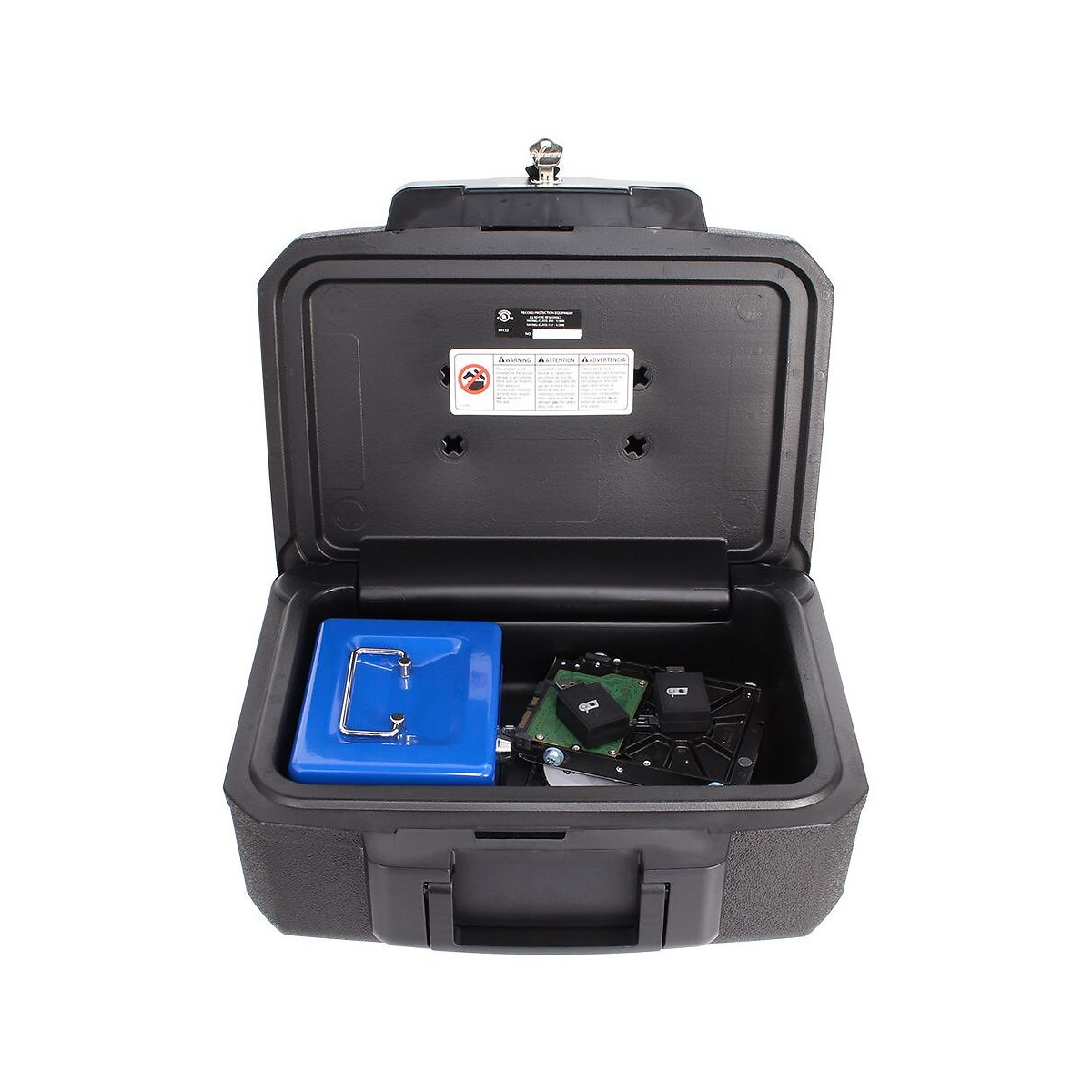 Serrure à cylindre avec 2 clés Fournit 30 minutes de protection contre le feu pour les documents conformément à l'UL = Underwriters Laboratory Fire Endurance Test. La température dans le pas de tir est de 843° pendant 30 minutes. A l'intérieur, la température reste inférieure à 177°, donc les documents sont protégés. Les supports de données - CD, DVD, clés USB, clés USB, etc. - sont également sûrs pendant 30 minutes après le test d'incendie ETL et sont également soumis à une température de 843 °. La cassette est en plastique de haute qualité, de couleur noire. Convient pour les tailles jusqu'au format A5. Dimensions extérieures mm (H x L x P) :156 x 362 x 284 Dimensions intérieures (mm) H x L x P :89 x 305 x 191 Poids : 6 Kg Volume:5 litresSpécifications techniques