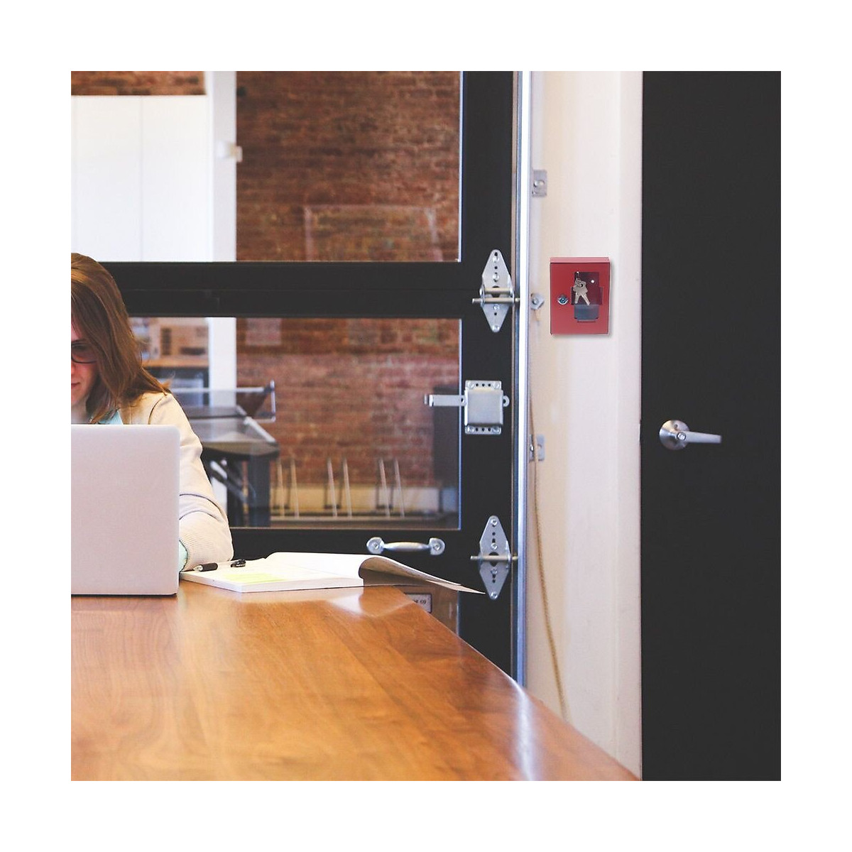 Boîtier en acier peint en rouge la clé est rapidement à portée de main en cassant la vitre le modèle est également disponible avec un clapet 1 morceau de crochet Le matériel de montage est inclus dans la livraison Serrure à cylindre / 2 clés Dimensions extérieures (H x L x P): 150 x 120 x 32 mm Nombre de crochets: 1 clé Poids: 0,5 kgSpécifications techniques