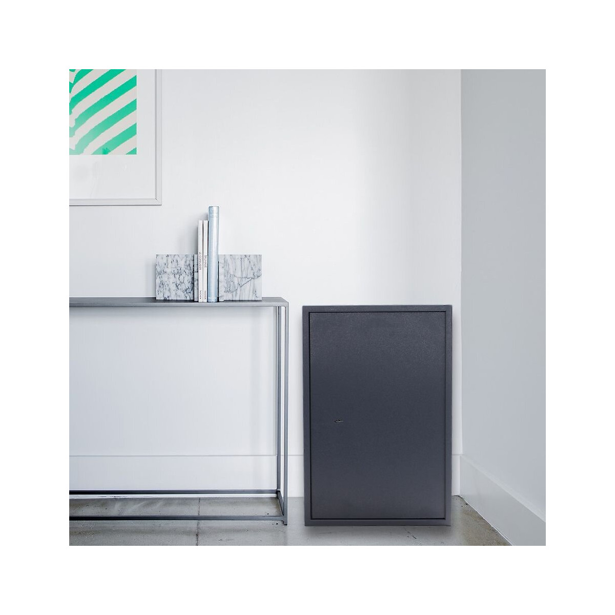 non certifié Serrure de sécurité à double panneton avec 2 clés Fonctions de sécurité: corps simple paroi Epaisseur du vantail 4 mm Épaisseur du corps 2 mm fort verrouillage de boulon d'un côté Angle d'ouverture de la porte 90 degrés Charnières qui disparaissent 1 étagère fixe - amovible 2 trous chacun dans la paroi arrière et en bas Ø 10 mm Matériel de montage inclus Dimensions extérieures: 670 x 450 x 360 mm Dimensions intérieures: 665 x 445 x 300 mm Poids: 26 kg Volume:89 litresSpécifications techniques