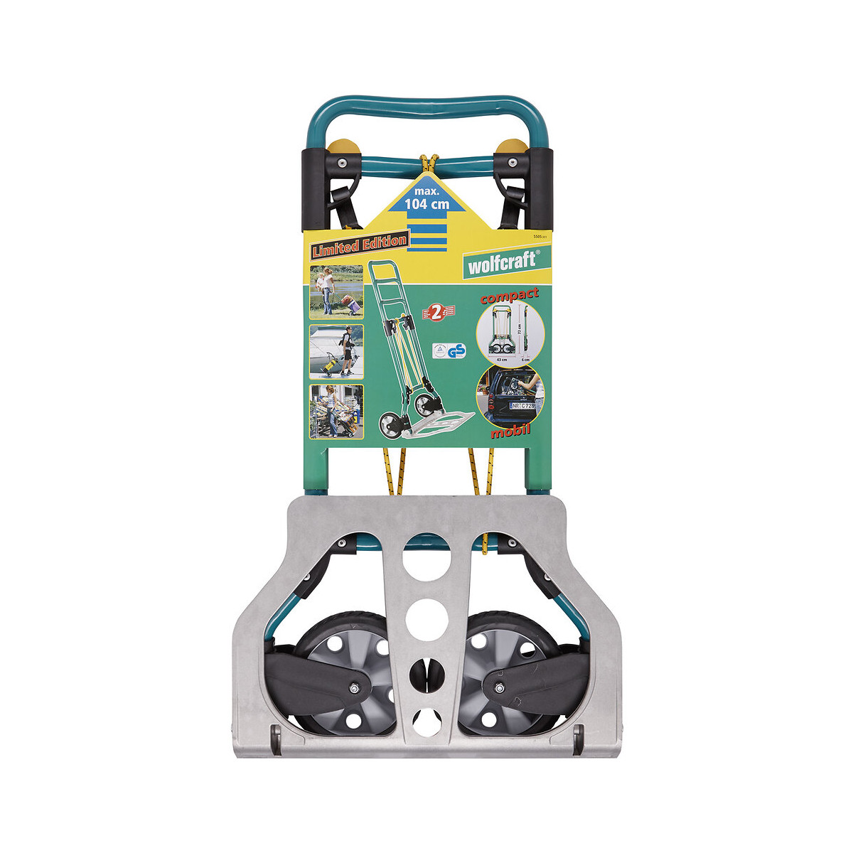 1 Transport System TS 550 charge maximum minimum 70 kg. Le transport passe-partout. Encombrement réduit. Hauteur maximum. 1050 mm. Grâce à l'automatisme d'ouverture, les roues et le plateau s'ouvrent en une seule action. Avec réglage en hauteur sans palier pour une manipulation aisée. Traverses hautes arrondies idéales pour le transport d'objets circulaires. Poignées arrondies pour une prise aisée, même en cas de pièces encombrantes. Fixation maligne en 2 points avec de nombreuses possibilités d'attache. Label TUV. Fabrication européenne. Garantie 2 ans. Dimensions net L 430 mm x l 445 mm x H 1050 mm. Dimensions plié L 430 mm x l 60 mm x H 730 mm. Poids net : 3,9 kg.