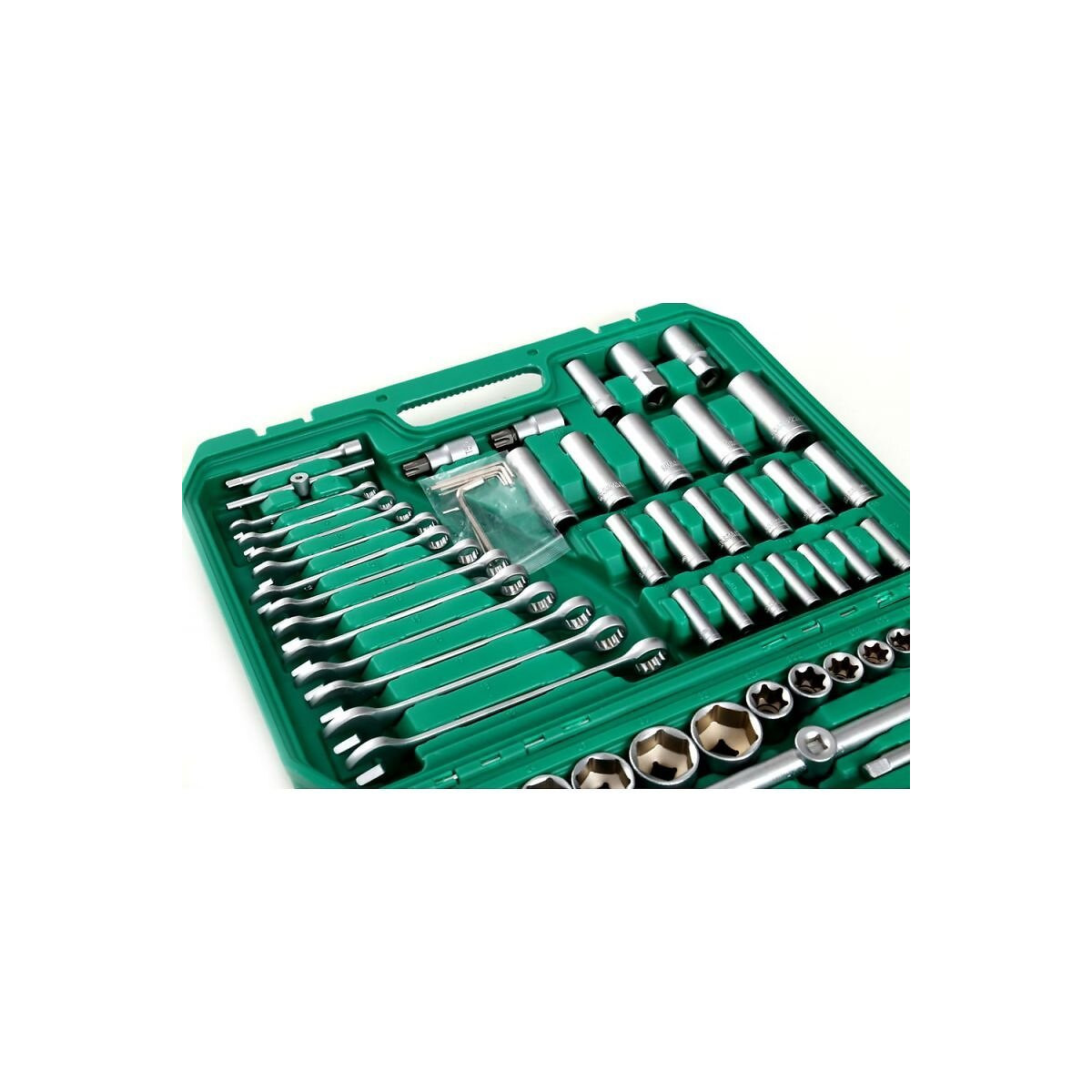 Un set d'outils extrêmement étendu. Les outils se caractérisent par leur fabrication robuste, des matériaux durables et un étui pratique dans lequel chaque outil a sa propre place. Pour encore plus de commodité, l'ensemble comprend un jeu de cliquets à 72 dents. Le set se compose de 216 pièces différentes afin de garantir un outil adapté à chaque besoin. Les outils sont faits en acier chrome vanadium (CrV) trempé destiné aux outils d'atelier. Chaque outil a son propre emplacement, ce qui permet de trouver facilement la taille de clé dont vous avez besoin; CARACTÉRISTIQUES TECHNIQUES: Set d'outils complet; Le set comprend : clés à cliquet, clés à douille hexagonales et dodécagonales, mèches plates, en, croix, torx, Allen, clés mixtes; Poids : 11.5 kg; 216 élémentsSpécifications techniques