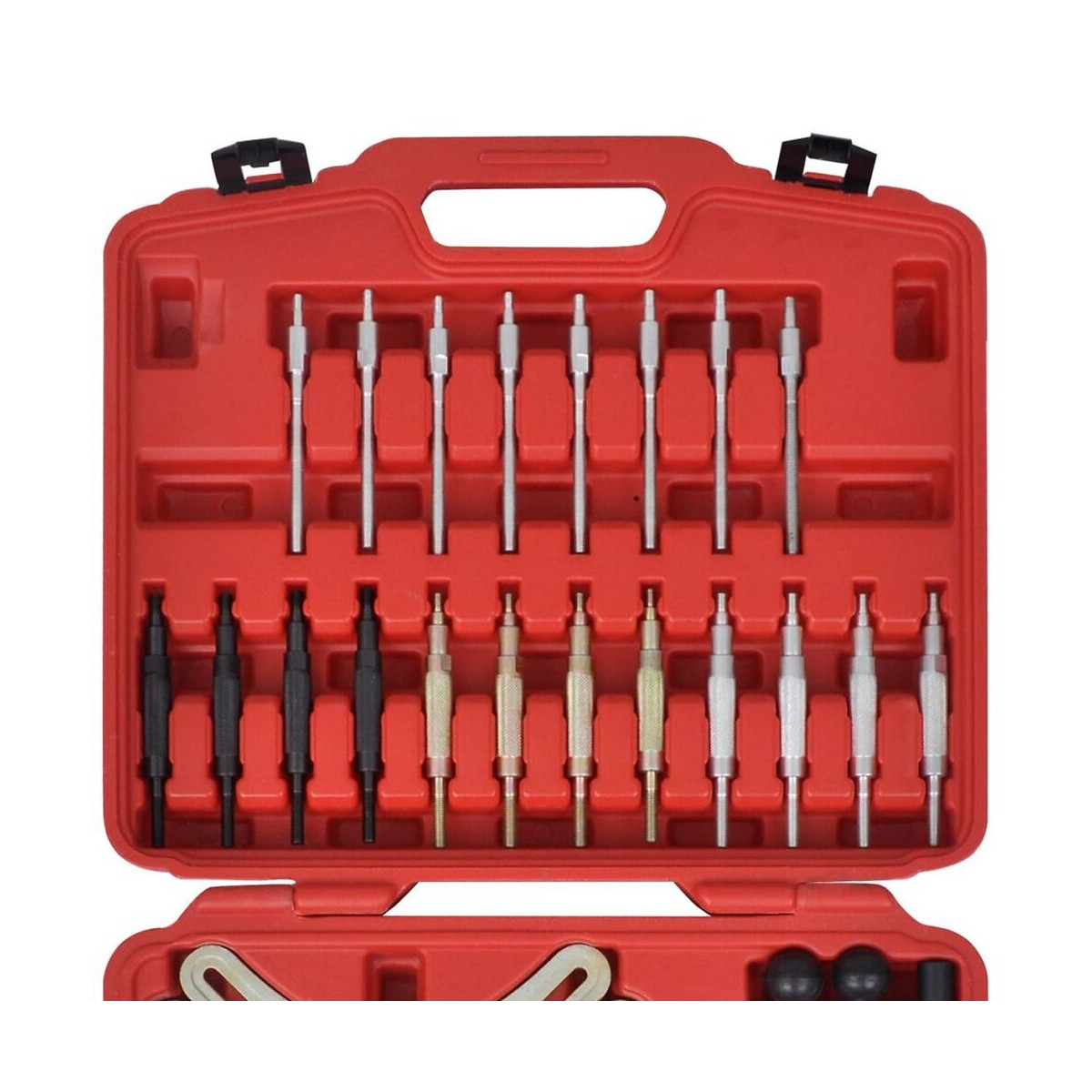Cet outil d'alignement d'embrayage de haute qualité est utilisé pour centrer parfaitement le disque d'embrayage sous la plaque de compression qui est boulonnée sur le volant moteur. L'utilisation de cet outil facilite l'alignement des cannelures dans le disque d'embrayage avec le trou de la butée d'embrayage dans le volant moteur. Cet kit d'outil d'alignement d'embrayage évite la déformation des plaques et lui évite de se désengager ou de causer un frottement. Un outil de remontage est également inclus, avec lequel vous pouvez remonter l'embrayage. Fabriqué avec des normes élevées, ce kit outils est très résistant et convient à un usage professionnel. Le kit est livré dans une mallette moulée par soufflage pour facilité le stockage et le transport. Dimensions du kit: 46 x 42 x 11 cm (L x P x H) Construction solide Pour faciliter l'alignement du disque d'embrayage et du volant moteur Livré dans une mallette moulée par soufflage pour faciliter le stockage et le transport Convient pour la plupart des véhicules tels que VW, BMW, Ford, Opel, Mercedes et Renault Contenu du kit: Pinces principales Adaptateurs Spigot: Ø15/23, Ø15/28, Ø15/34, O21/23, Ø20/23, Ø14/15/20 mm Filetage d'assemblage du volant moteur: Ø6x1, Ø7x1, Ø8x1,25 mm 4 x goupilles vis de montage Adaptateur étagé Outil de blocage du volant moteur