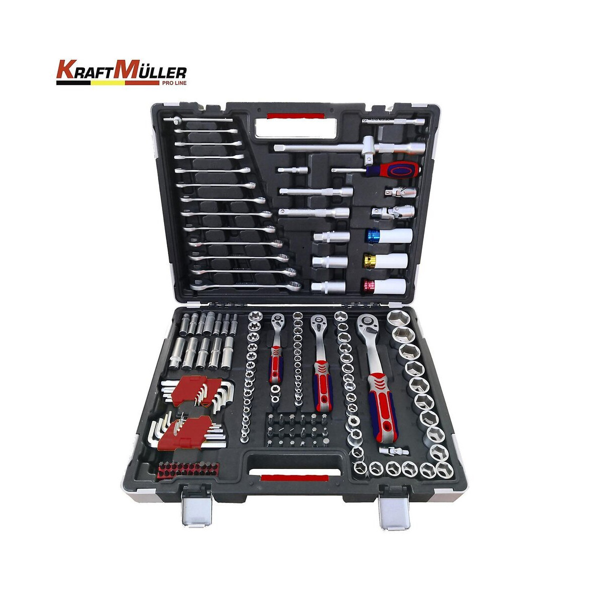 KraftMuller KM-CRV-157: Ensemble d'outils de 157 pièces Parfait pour les bricoleurs, les réparateurs, les mécaniciens, les ateliers de carrosserie, etc. Cet outil parfait de KraftMuller se compose d'un ensemble d'outils haut de gamme de 157 pièces. Forgé à partir d'acier de haute qualité (CRV / CrMo) et de finition polie chromée, résistance, durabilité, corrosion et rouille. L'opération simple d'une seule main avec le levier directionnel à profil bas permet de réduire les points d'accrochage. Le boîtier moulé par soufflage pratique pour un rangement pratique et la portabilité des instruments. Son intérieur robuste et son organisateur maintiennent les instruments en place. Il comprend les outils nécessaires pour la plupart des réparations mineures et des projets de bricolage simples autour du bâtiment. Une collection d'instruments fantastique à avoir à la maison, au garage et à l'atelier. Traits: Ensembles d'outils de bricolage de 157 pièces Forgé à partir d'acier de haute qualité (CRV / CrMo) et finition chromée polie, résistance, durabilité, sans danger contre la corrosion et la rouille. L'opération simple d'une seule main avec le levier directionnel à profil bas permet de réduire les points d'accrochage. Boîtier moulé par soufflage pratique pour un rangement et une portabilité faciles des outils. Son intérieur et son organiseur robustes maintiennent les outils en place. Contient les outils nécessaires pour la plupart des petites réparations et des projets de bricolage de base dans la maison. Aussi, un excellent ensemble d'outils à avoir à la maison, au garage et à l'atelier. Caractéristiques: Nom de marque: KraftMuller Couleur: noir, bleu, rouge Matériaux: Acier au chrome vanadium 6150 Acier au chrome vanadium 50BV30 Acier au chrome vanadium 40 Acier au chrome-molybdène Taille: 3/8 "et 1/2" Matériau du boîtier: High Density Polyethylene (HDPE) Contenu: Adaptateur 1pc 3 / 8-5 / 16 10 pièces prise 3/8: 10-11-12-13-14-15-16-17-18-19mm 6 pièces 3/8 douilles TorxL E10-11-12-14-16-18 5 pièces 3/8 douille profonde: 10-11-12-13-14mm Prise de bougie d'allumage 1pc 3/8: 18mm 1 barre d'extension 3/8: 125mm Joint universel 1pc 3/8 9 pièces clé Torx: T10-15-20-25-27-30-40-45-50 9pcs clé hexagonale: 1.5-2-3.5-3-4-5-6-8-10mm 13 pièces 1/4 SocketL 4-4.5-5-5.5-6-7-8-9-10-11-12-13-14mm 6 pièces 1/4 douille Torx: E4-5-6-7-8-10 7 pièces 1/4 de profondeur Spcket: 4-5-6-7-8-9-10mm 1pc 1/4 joint universel 1 pc 1/4 Couple 2 barres d'extension 1/4: 50 mm, 100 mm 1 poignée 1/4 clé Prise de couleur 3 pièces Clé combinée 12 pièces: 8-9-10-11-12-13-14-15-16-17-18-19mm 17pcs 1/2 douille: 10-11-12-13-14-15-16-17-18-19-20-22-23-24-27-20-32mm 28 pièces 5/16 embouts: PH 3-4, PZ 3-4. T40-45-50-55-60-70.H7-8-10-12-14mm SL 8-10-12mm 20 pièces 1/4 bits: PH 0-1-2, PZ 0-1-2, T8-9-10-15-20-25-30, H3-4-5-6mm sl4-5,5-7mm Poignée à cliquet 3 pièces: 1/4. 3/8, 1/2 2 pièces 1/2 barre d'extension: 125 mm, 250 mm 2 pièces 1/2 prise de bougie d'allumage L 16,21 mm 1pc 1/2 joint universel Barre coulissante 1pc "T": 1/4 Adaptateur 1pc 1 / 2-5 / 16 1 pièces 1/2 douille Torx: E20, E24 1 pc 3 voies ADA