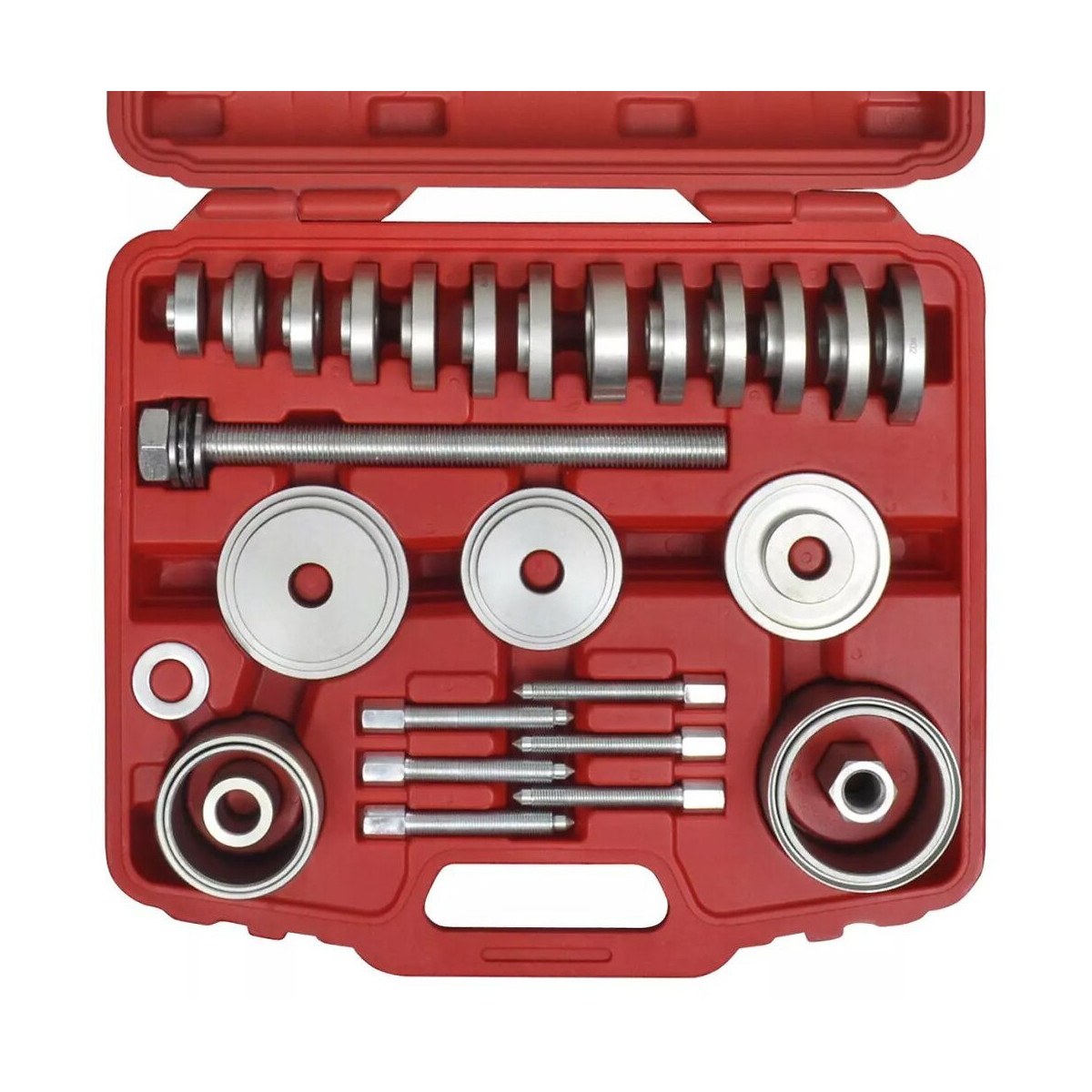 Ce kit d'outils pour l'installation et démontage du roulement de roue est un choix idéal pourle retrait rapide et efficace et l'installation de roulements de roue sur les véhicules à traction avant. Il rend le montage très facile, car il élimine la nécessité de retirer et de pavaner le porte-fusée. Fabriqué en matériau de haute qualité, ce kit de retrait et installation de roulement de roue est très solide. Le kit est livré dans une mallette de transport moulée par soufflage pour le stockage et le transport facile. Taille du kit: 47 x 42 x 10,5 cm (L x l x H) Matériel: acier carbonisé Diamètre de la plaque de pression: 50/55/59/63,3/66,6/70,3/71,5/73,1/73,4/74,8/77,5/81,5/83,4 mm Récepteur du diamètre de gaine: 76 mm, 86 mm, 91 mm, 102 mm Extracteur de boulons: M12 x 1,5 et M14 x 1,5 Livré dans un étui de transport moulé par soufflage pour le transport et le rangement