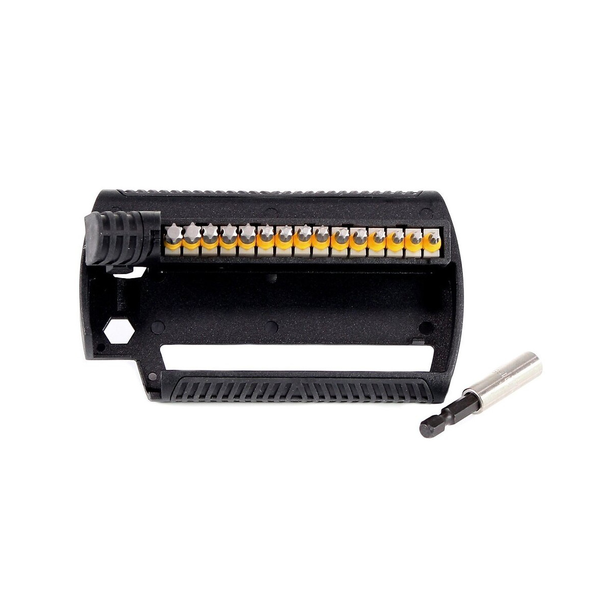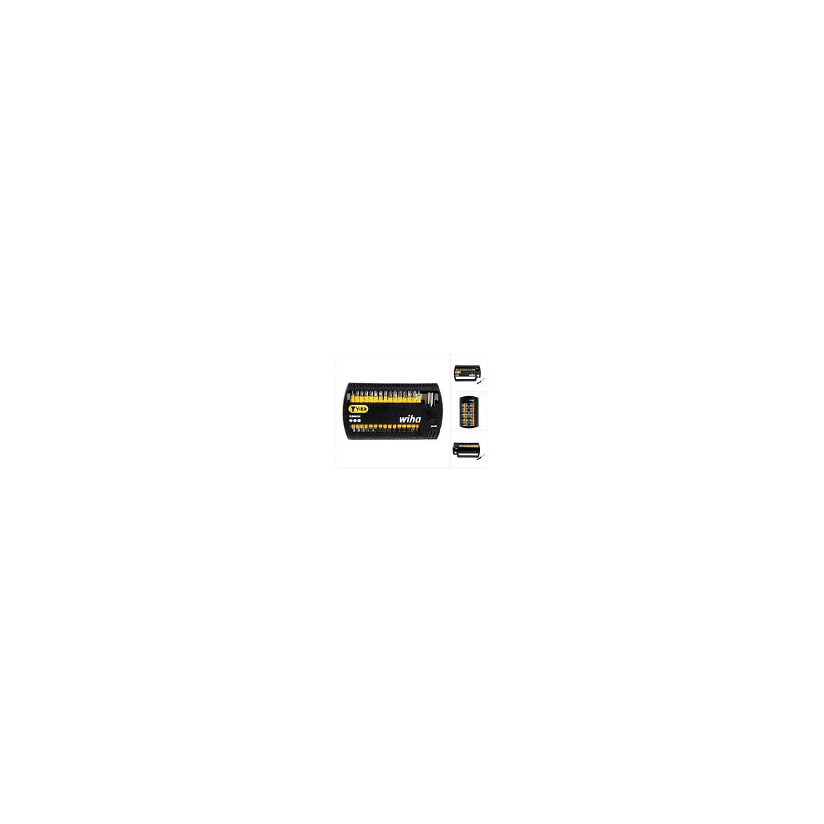 Contenu du paquet: - 1x Y-Bit 25 mm, Phillips: PH1, Longueur embout: 25mm - 4x Y-Bit 25 mm, Phillips: PH2, Longueur embout: 25mm - 1x Y-Bit 25 mm, Phillips: PH3, Longueur embout: 25mm - 2x Y-Bit 25 mm, Pozidriv: PZ1, Longueur embout: 25mm - 4x Y-Bit 25 mm, Pozidriv: PZ2, Longueur embout: 25mm - 2x Y-Bit 25 mm, Pozidriv: PZ3, Longueur embout: 25mm - 2x Y-Bit 25 mm, TORX®: T10, Longueur embout: 25mm - 3x Y-Bit 25 mm, TORX®: T15, Longueur embout: 25mm - 3x Y-Bit 25 mm, TORX®: T20, Longueur embout: 25mm - 3x Y-Bit 25 mm, TORX®: T25, Longueur embout: 25mm - 3x Y-Bit 25 mm, TORX®: T30, Longueur embout: 25mm - 2x Y-Bit 25 mm, TORX®: T40, Longueur embout: 25mm - 1x Porte-embout magnétique (41922), Six pans extérieur: 1/4 mm, Six pans intérieur: 1/4 - 1x XLSelector Wiha Description du produit: Jusqu'à présent, à l'achat d'un embout, il n'était pas clair quels embouts conviennent pour quelle application. Wiha met fin à la complexité entre la machine utilisée, le cas de vissage et le grand choix d'embouts différents. Grâce au concept révolutionnaire d'embout de Wiha, seule la forme de vis est déterminante pour la sélection de l'embout correct.L'embout en T est ainsi idéal pour le vissage de vis en forme de T avec un angle de 90° entre le filetage et la tête de vis. Grâce à la zone de torsion allongée, brevetée, l'embout convient également pour les vissages à impact et visseuses à chocs et garantit une durée de vie 120x plus élevée en comparaison avec les embouts standard Wiha. Par ailleurs, il est facile et rapide de retrouver les embouts colorés, également dans le noir avec lumière UV grâce au manteau coloré. Ceci permet de diminuer le nombre d'embouts perdus et d'économiser les coûts de réapprovisionnement. Les embouts dans les entraînements les plus courants sont rangés de manière compacte et peu encombrante dans le XLSelector. Spécifications techniques: Numéro de commande: 41832 Poids: 260 g Dimensions de l'emballage (L x l x H): 190 x 110 x 25 mm