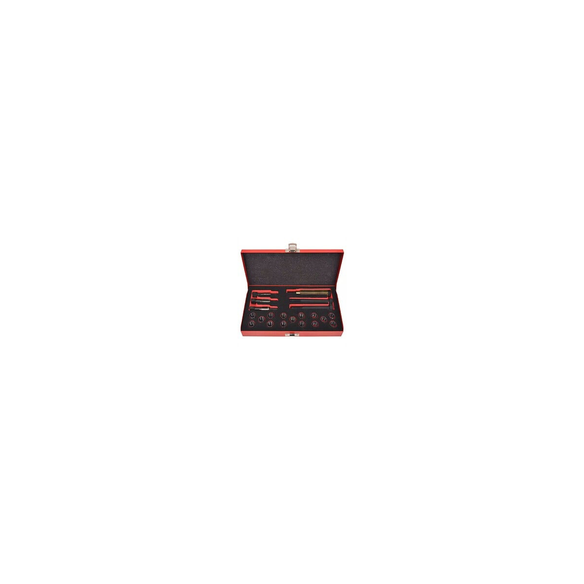 Cet ensemble professionnel de 21 pièces a été conçu pour réparer les filetages de bougies de préchauffage endommagés ou usés. Le kit robuste et durable est fait d'acier au carbone fort et d'alliage d'acier. Les insertions ont des sièges complètement fermes et hermétiques. Tous les outils et insertions sont livrés dans un boîtier métallique robuste pour faciliter le stockage et le transport. Matériau : Acier au carbone et alliage d'acier Dimensions de la mallette : 25,5 x 26 x 4 cm (L x l x H) Pour réparer les filetages de bougies de préchauffage endommagés ou usés Sièges d'insertion complètement fermes et hermétiques Insertions à paroi extrêmement mince avec protection contre la corrosion Livré dans un boîtier métallique robuste La livraison comprend : 1 x taraud E1 avec goupille de guidage, M12 x 1,25 1 x taraud E3 avec goupille de guidage, M14 x 1,25 1 x alésoir E2 avec goupille de guidage, M13 5 x insertion de 12 mm, M12 x 1,25 5 x insertion de 19 mm, M12 x 1,25 5 x insertion de 26 mm, M12 x 1,25 1 x outil de montage 2 x boulon de montage