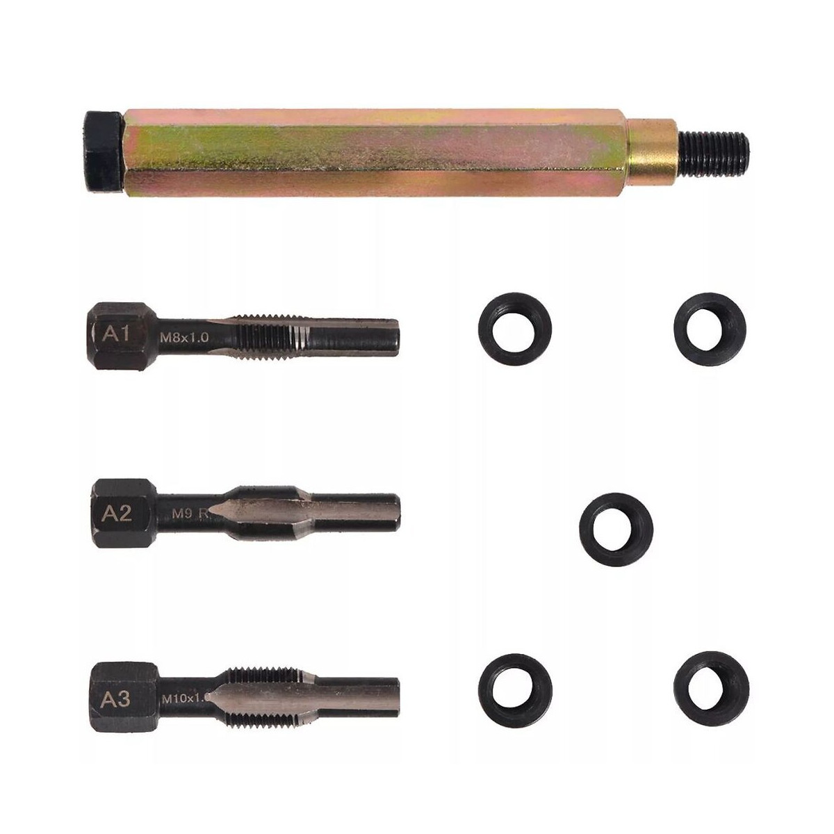 Cet ensemble professionnel de 9 pièces a été conçu pour réparer les filetages de bougies de préchauffage endommagés ou usés. Le kit robuste et durable est fait d'acier au carbone fort et d'alliage d'acier. Les insertions ont des sièges complètement fermes et hermétiques. Tous les outils et insertions sont livrés dans un boîtier métallique robuste pour faciliter le stockage et le transport. Matériau : Acier au carbone et alliage d'acier Dimensions du boîtier : 18 x 13,5 x 4,5 cm (L x l x H) Pour réparer les filetages de bougies de préchauffage endommagés ou usés Sièges d'insertion complètement fermes et hermétiques Insertions à paroi extrêmement mince avec protection contre la corrosion Livré dans un boîtier métallique robuste La livraison comprend : 1 x taraud A1 avec goupille de guidage, M8 x 1,0 1 x taraud A3 avec goupille de guidage, M10 x 1,0 1 x alésoir A2 avec goupille de guidage, M9 5 x insertion de 12 mm, M8 x 1,0 1 x outil de montage