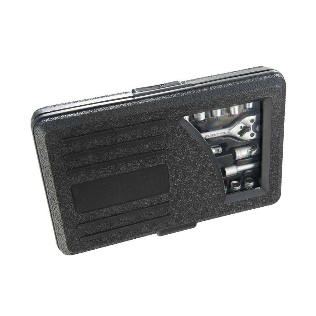 Malette 45 douilles Contenu du coffret: 13 douilles 4 à 13 mm 10 douilles tête hexagonale 5/32 à 1/2 1 rallonge 1/4 50 mm 1 adaptateur 1 clé à cliquet 1/4 avec inverseur et éjection de douilles rapide 1 tournevis en T 15 embouts de vissage assortis 1 poignée coulissante 1 cardan Matériau: chrome vanadium Coloris: argent et rouge Marque: Cogex