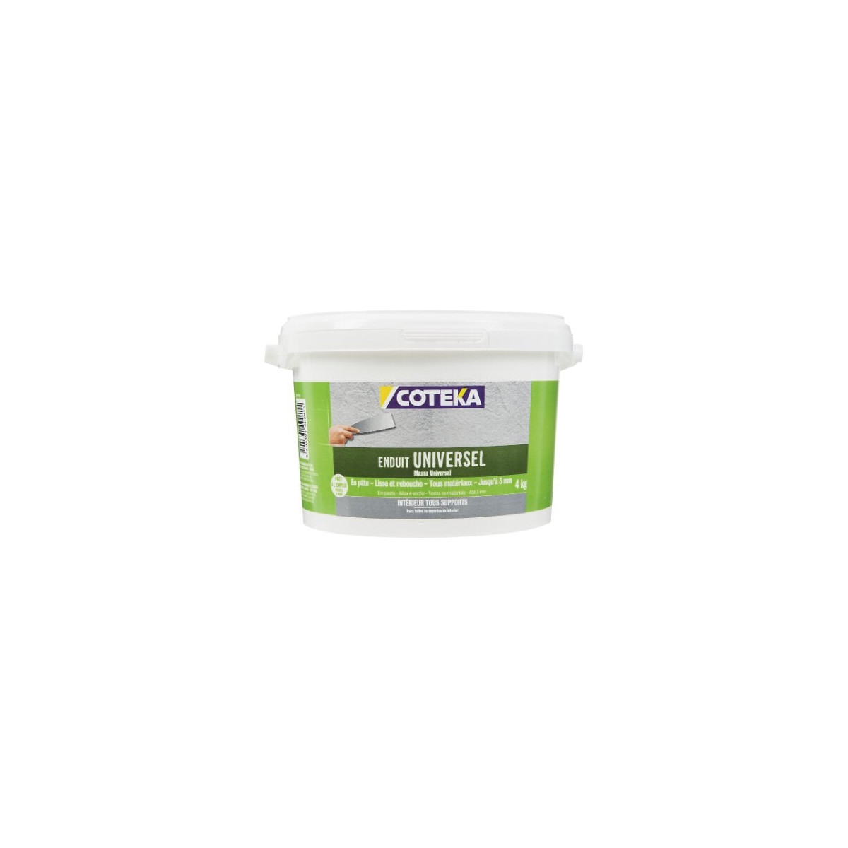 L'enduit universel permet de reboucher les petits trous et fissures jusqu'à 10mm et tous matériaux jusqu'à 3mm. Destination : intérieur. Information sur le niveau d'émission de substances volatiles dans l'air intérieur, présentant un risque de toxicité par inhalation, sur une échelle de classe allant de A+ (très faibles émissions) à C (fortes émissions).