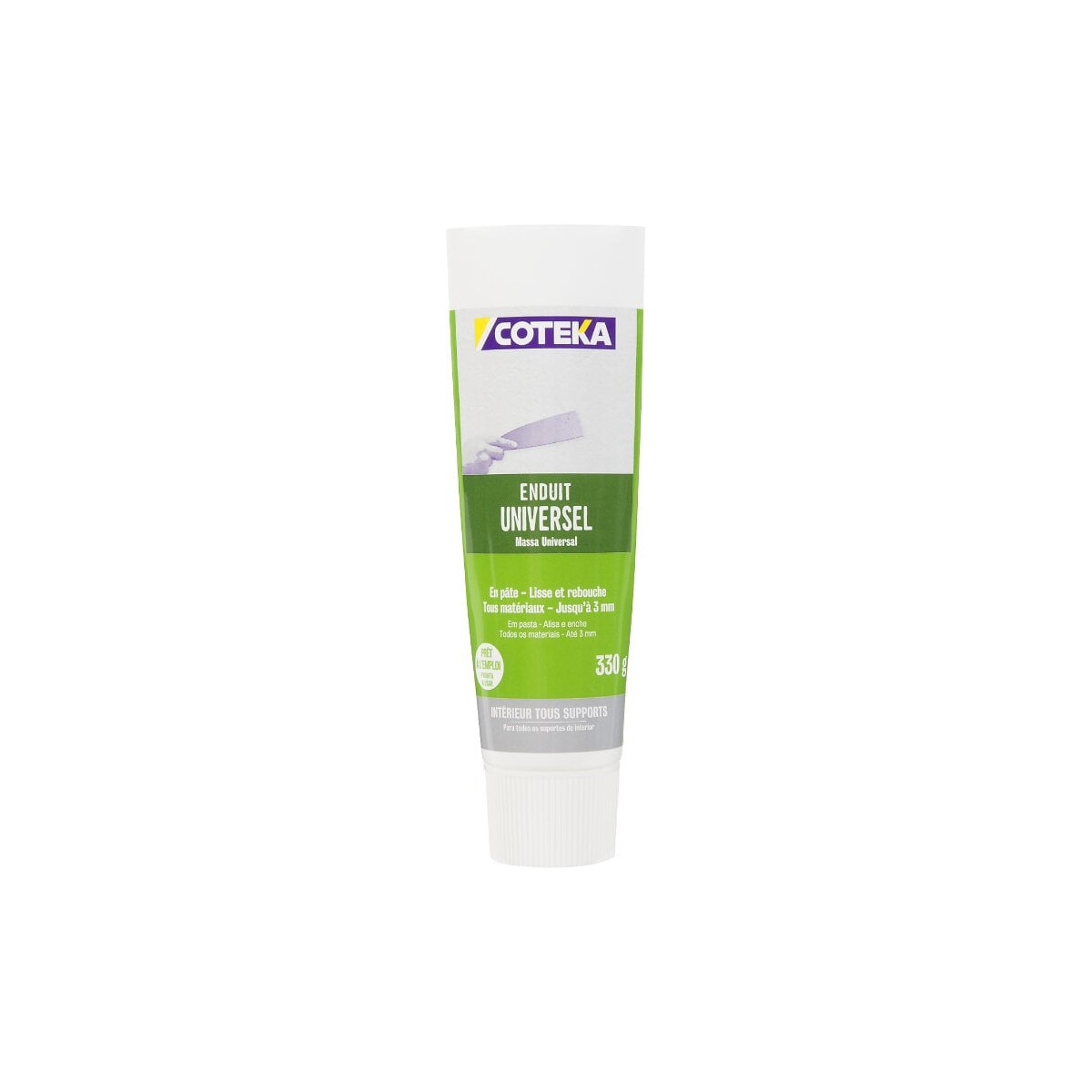 L'enduit universel permet de reboucher les petits trous et fissures jusqu'à 10mm et tous matériaux jusqu'à 3mm. Destination : intérieur. Information sur le niveau d'émission de substances volatiles dans l'air intérieur, présentant un risque de toxicité par inhalation, sur une échelle de classe allant de A+ (très faibles émissions) à C (fortes émissions).