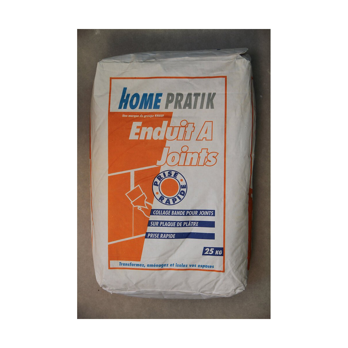 Enduit à prise rapide PM5 PR de 25kg, pour la pose de bandes à joint et le lissage des plaques de plâtre. Traitement des joints avec bande papier courant entre plaques et raccords (cueillies, angles, sortants, ...) pour ouvrages en plaques de parement en plâtre. Complexe de doublage polyplac et sandwiches d'isolation thermique intérieure. Cloisons avec âmes en réseau alvéolaires en carton polycloison. Permet d'exécuter le traitement et la finition dans la journée.