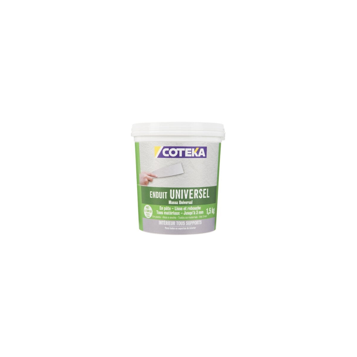 L'enduit universel pâte permet de reboucher jusqu'à 1 cm en une seule passe sans creuser ni fissurer. Destination : intérieur. Information sur le niveau d'émission de substances volatiles dans l'air intérieur, présentant un risque de toxicité par inhalation, sur une échelle de classe allant de A+ (très faibles émissions) à C (fortes émissions).
