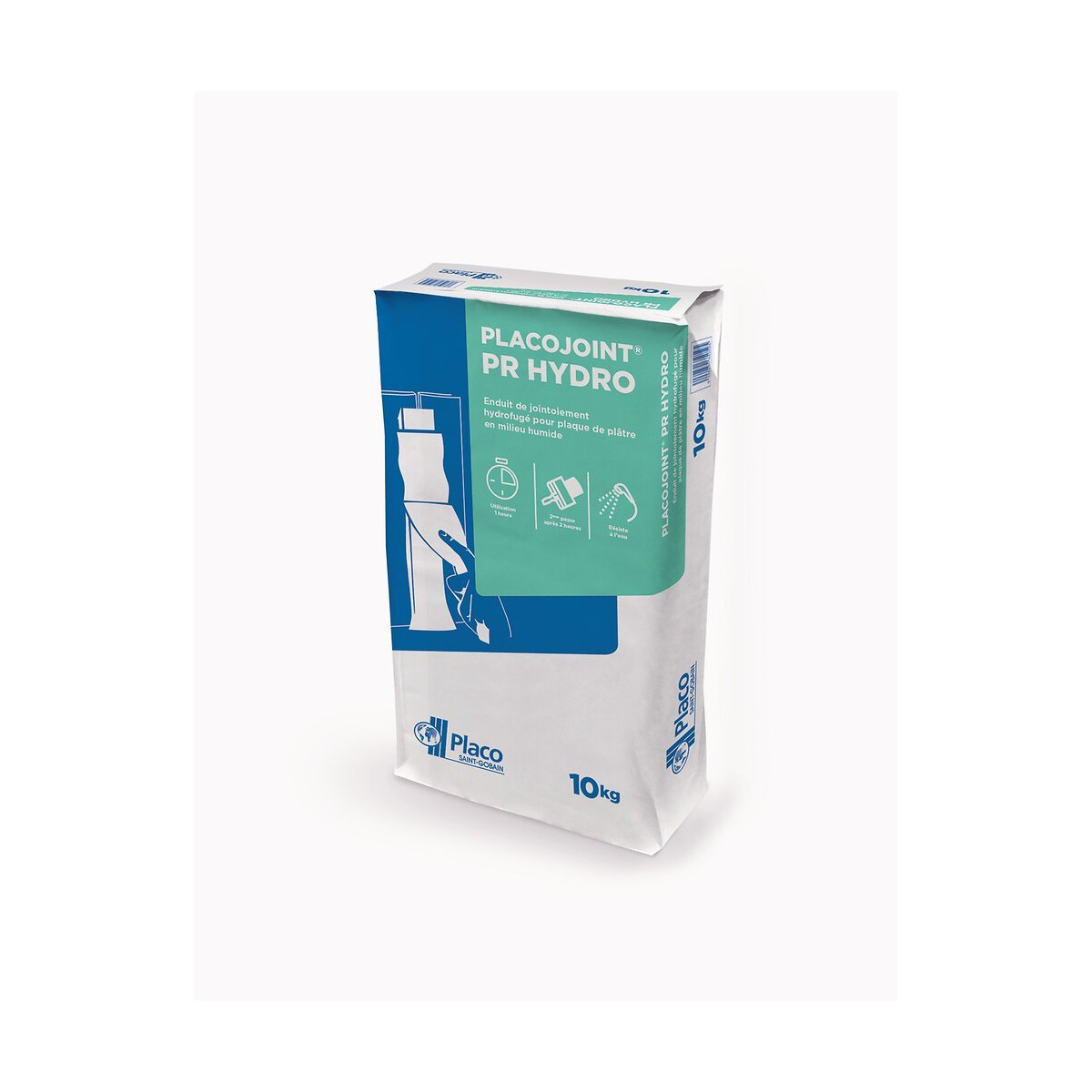 Enduit poudre à prise rapide (1 heure) hydrofugé Placo® pour le jointoiement avec bande des plaques de plâtre en locaux humides, et permettant un redoublement des joints dans les 2 heures, indépendamment des conditions climatiques.