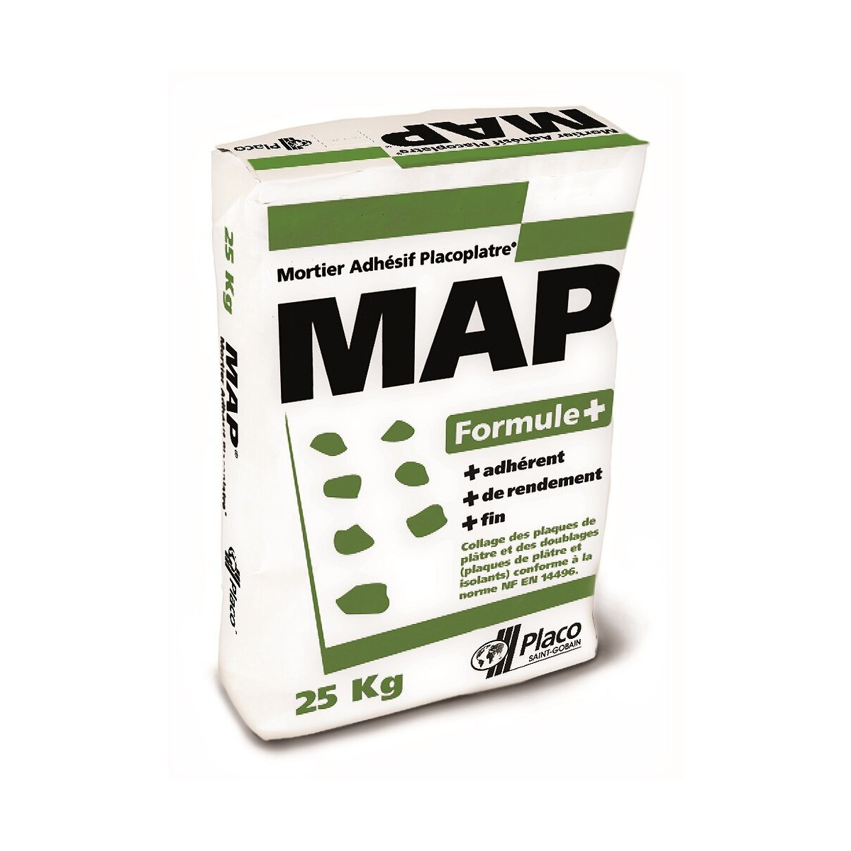 Mortier adhésif de collage Placo® pour plaques de plâtre et tout type de doublage plaques de plâtre et isolants (Placomur® Essentiel, Doublissimo®, Placotherm® +), de scellement et de rebouchage. Temps de prise 2 heures. Consommation minimum 2 à 3 kg /m². Pour le collage des complexes isolants panneau de doublage et des plaques de plâtre.
