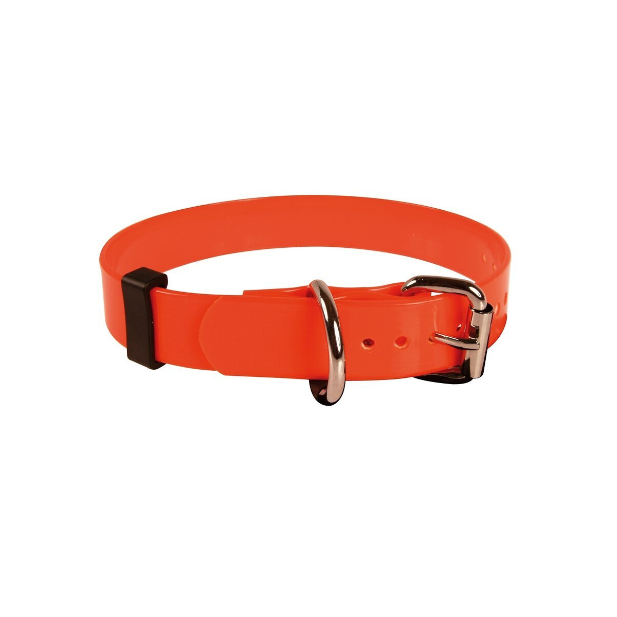Ce collier en plastique fluo permet de repérer facilement votre chien au loin. Le collier peut être immergé dans l'eau.