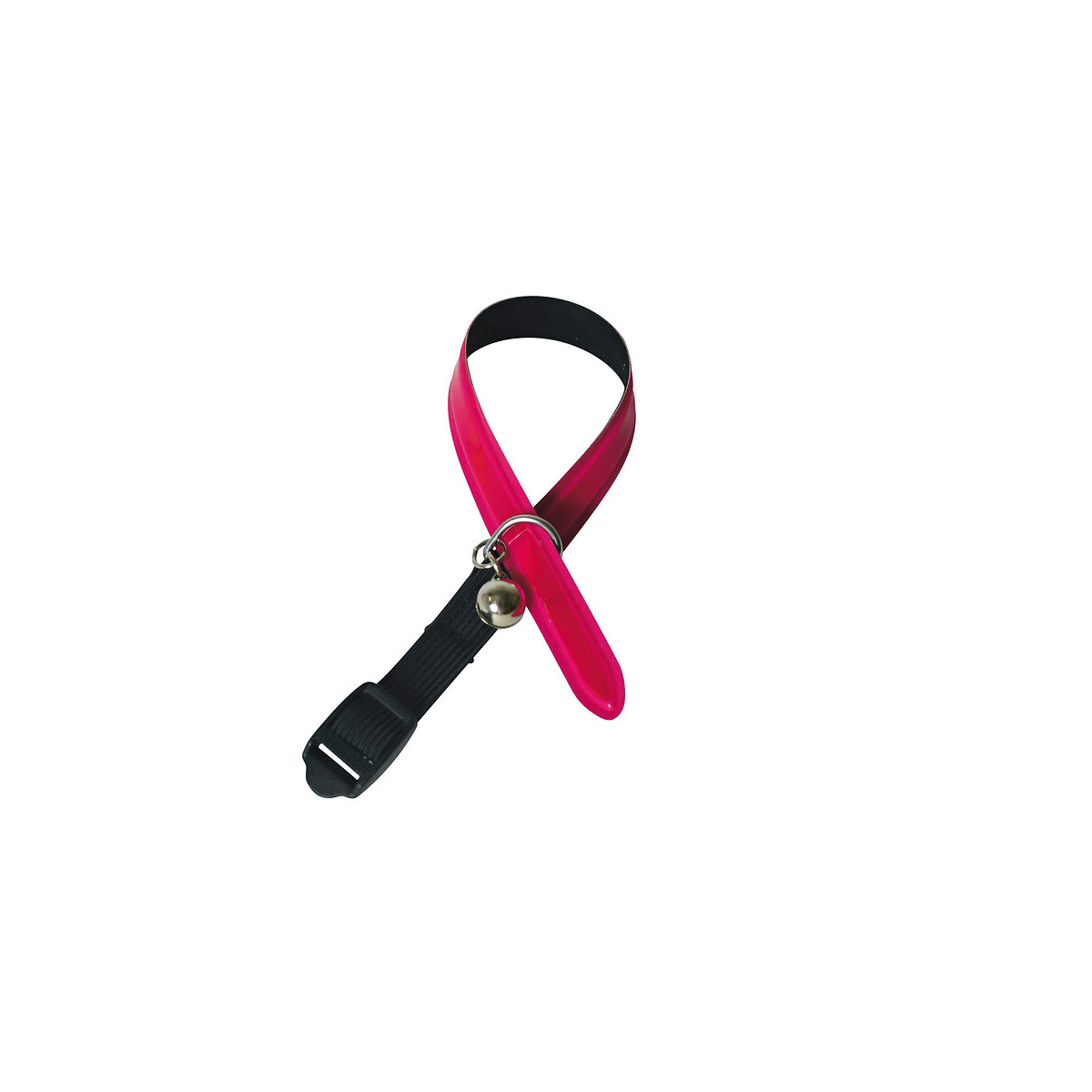 Collier Reflectite pour chat en plastique. Coloris : magenta. Élastique de sécurité. Fourni avec 1 grelot. Dimensions : Largeur 12 mm x Longueur 30 cm.