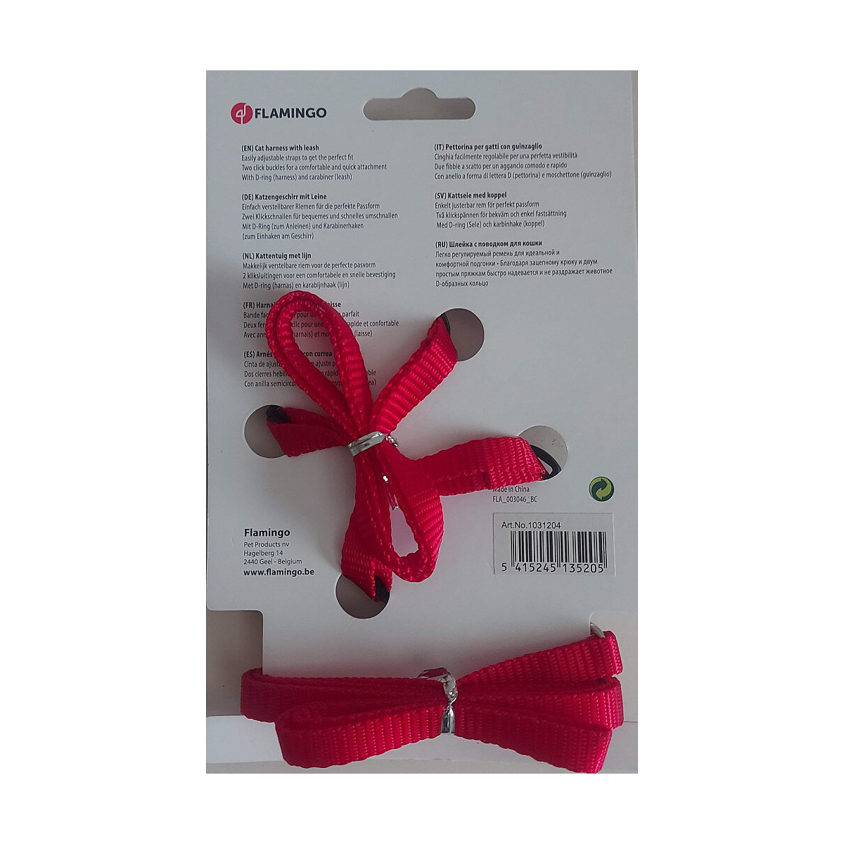 Harnais Et Laisse De 1.10 Mètre Pour Chat. Couleur Rouge. - Flamingo Pet Products - Fl-1031204