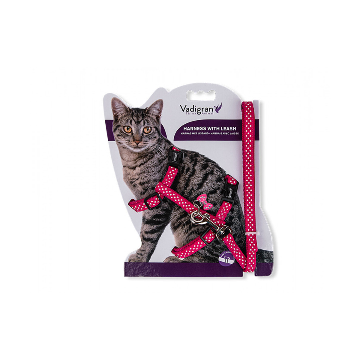 Harnais + Laisse 120 Cm. À Pois Fuchsia. Réglable. Pour Chat. - Vadigran - Va-16601