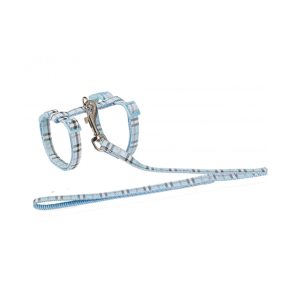 Harnais + Laisse 120 Cm. Écossais Bleu. Réglable. Pour Chat. - Vadigran - Va-16591