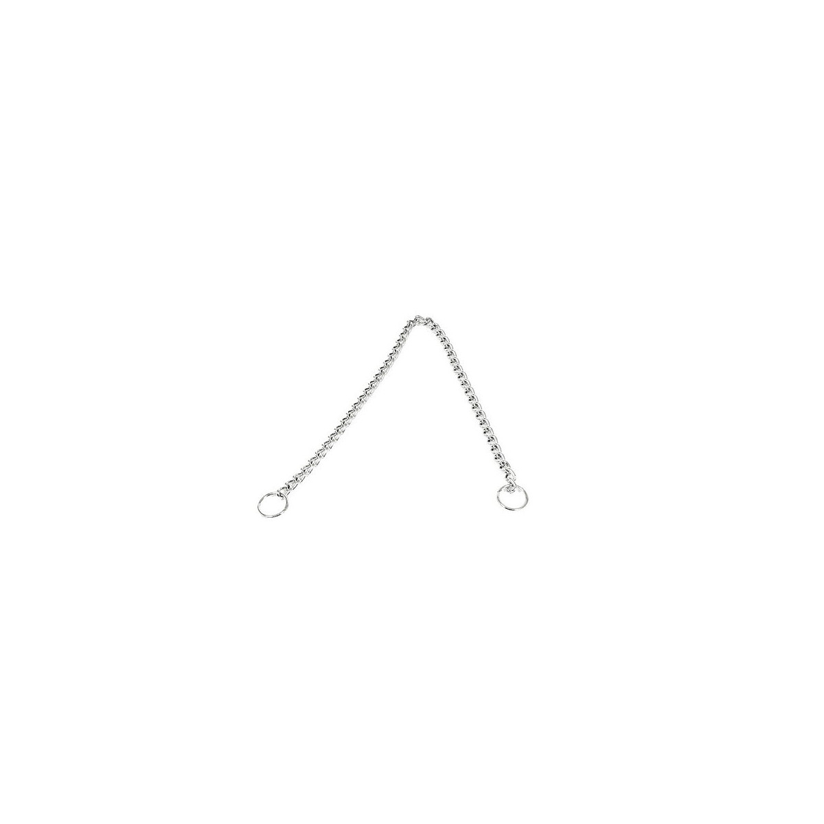 Collier pour chien simple en métal chromé. 1 rang. Longueur mesurée du milieu des anneaux. Dimensions : Largeur 45 mm x Longueur 70 cm.