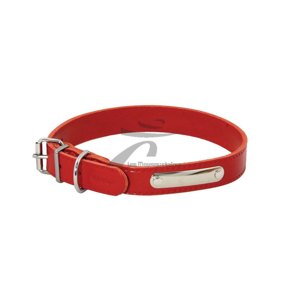 Collier Riveté pour chien en cuir. Coloris : rouge. Plaque métal d'identification rivetée. Dimensions : Largeur 22 mm x Longueur 55 cm.