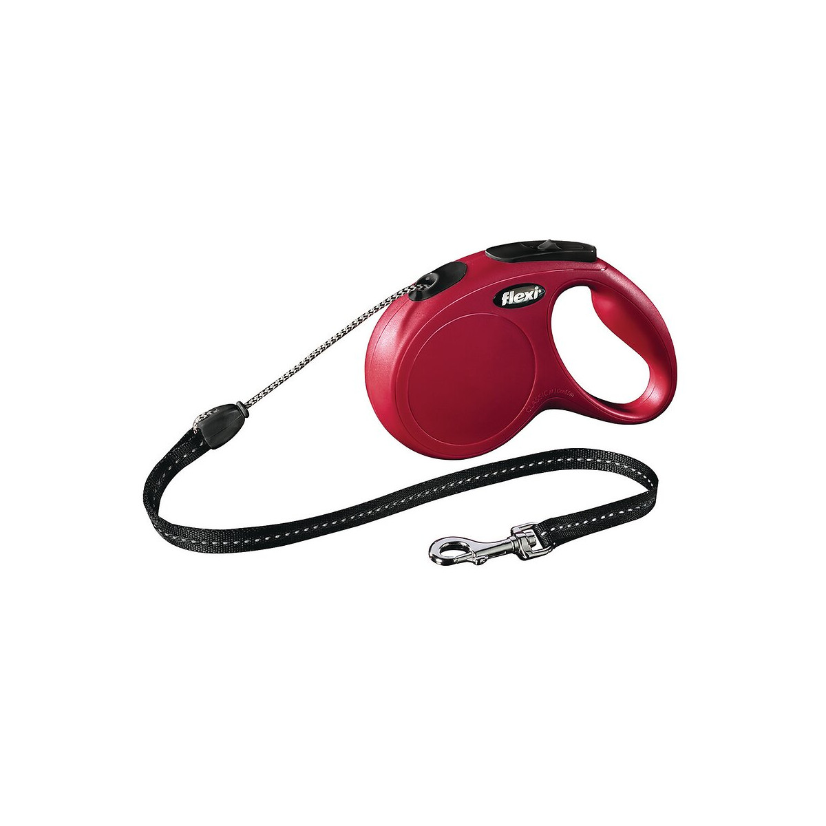 Laisse à enrouleur Flexi avec nouveau système de freinage et nouvelle forme ergonomique. Existe en rouge, en noir et en bleu. Pour chiens jusqu’à 20 Kg.