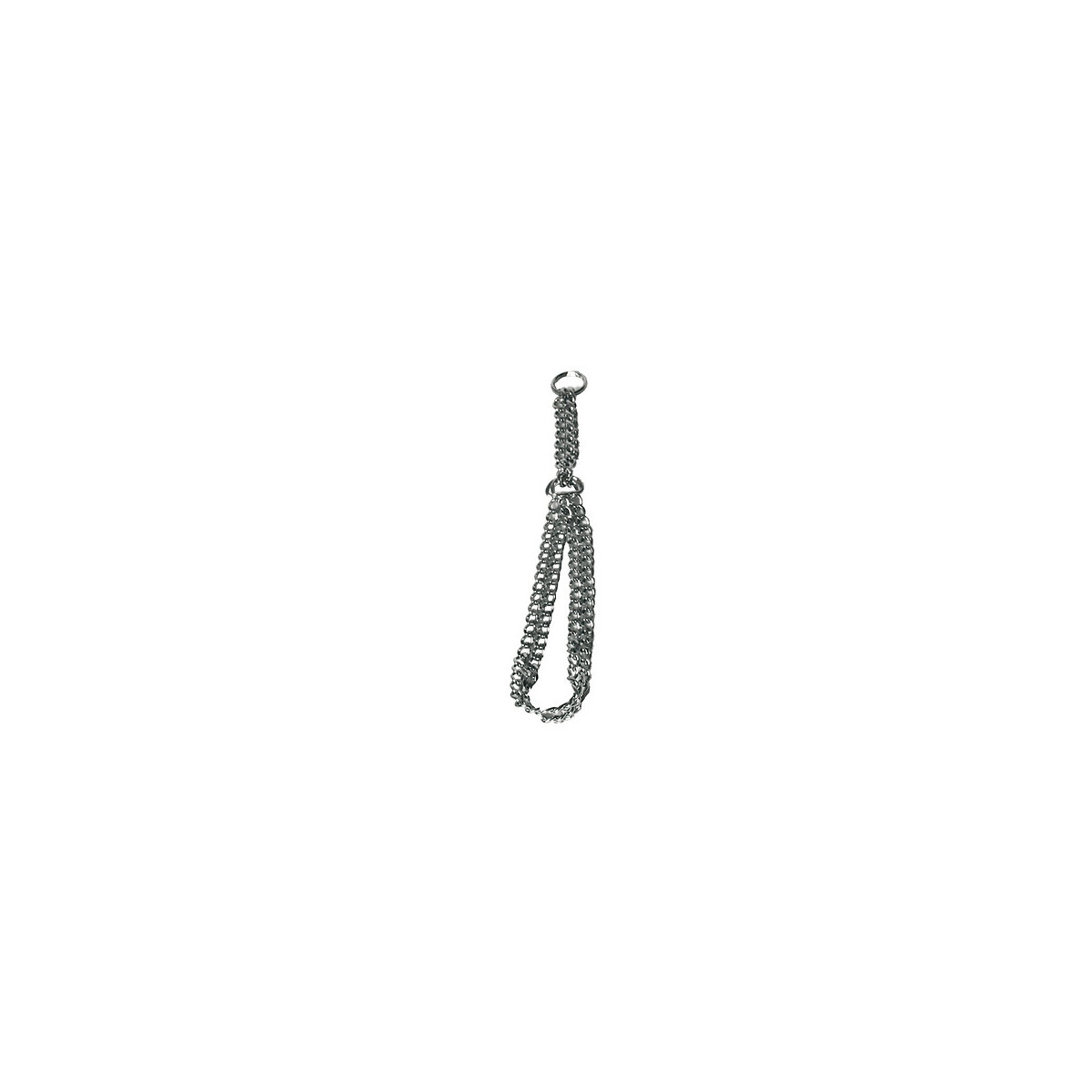 Collier Chaîne pour chien semi-étrangleur en métal chromé. Collier 2 rangs. Longueur mesurée du milieu des anneaux. Dimensions : Diamètre maillons - Longueur. Largeur 30 mm x Longueur 60 cm.