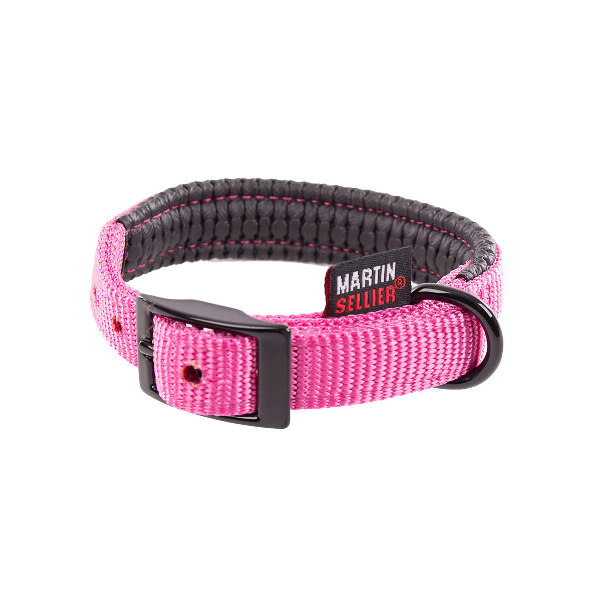 Collier Confort pour chien en nylon. Coloris : rose. Accessoires laqués. Doublé de mousse. Dimensions : Largeur 25 mm x Longueur 55 cm.