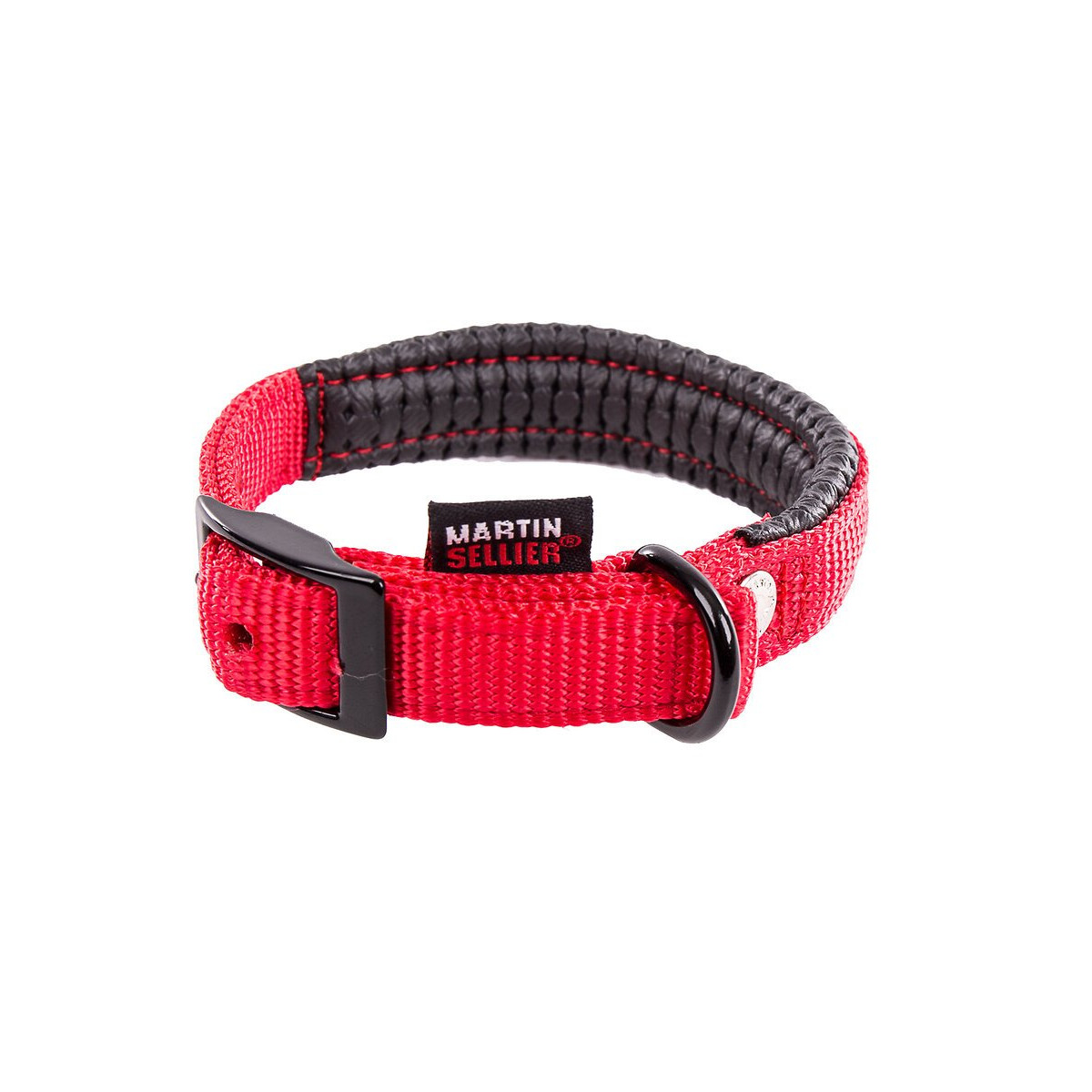 Collier Confort pour chien en nylon. Coloris : rouge. Accessoires laqués. Doublé de mousse. Dimensions : Largeur 16 mm x Longueur 35 cm.