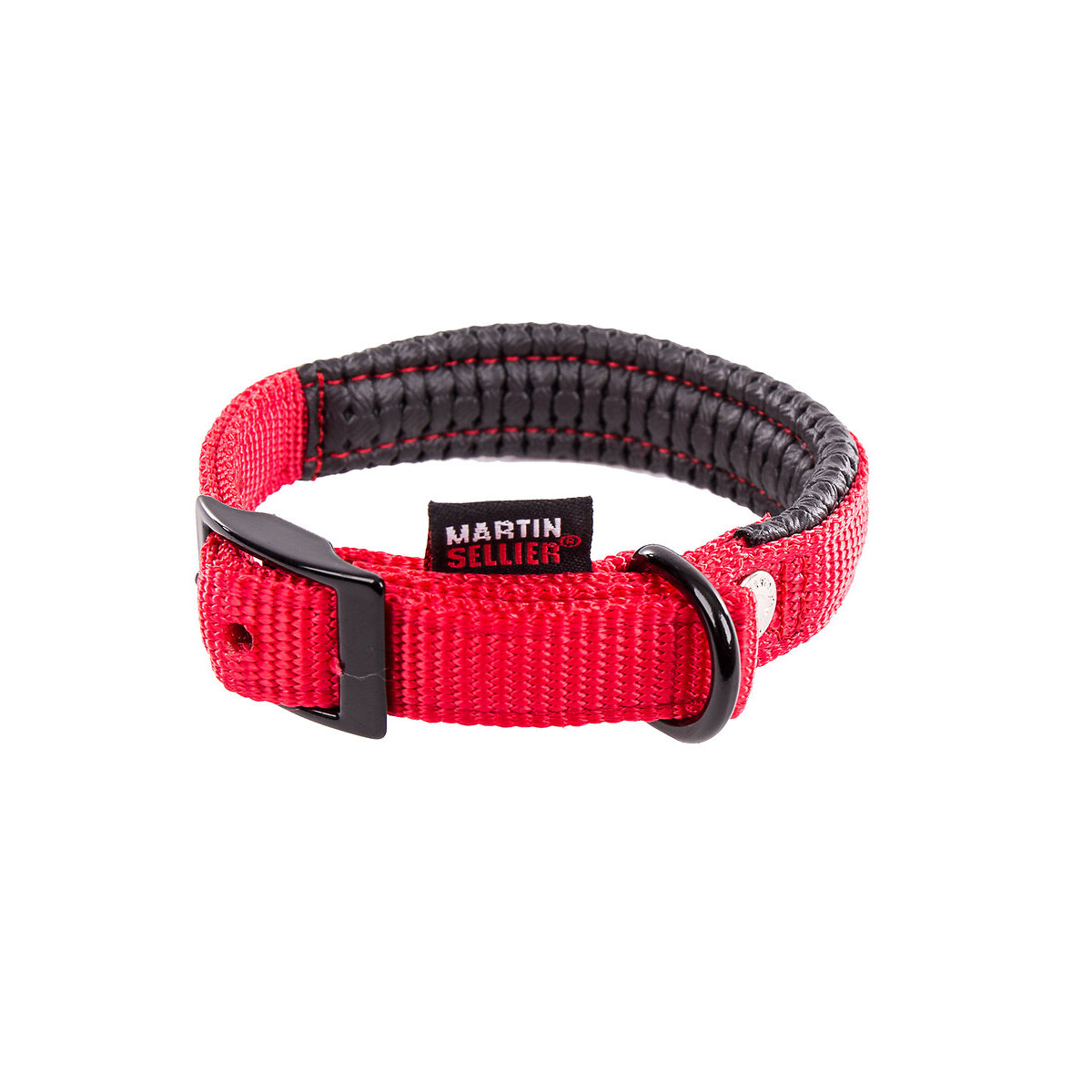 Collier Confort pour chien en nylon. Coloris : rouge. Accessoires laqués. Doublé de mousse. Dimensions : Largeur 25 mm x Longueur 65 cm.