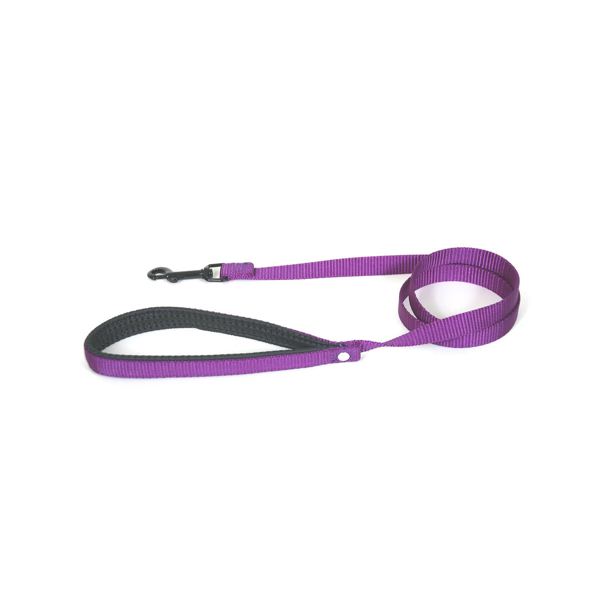 Laisse pour chien en nylon. Coloris : mauve. Avec mousqueton carabine et poignée confort. Dimensions : Largeur 25 mm x Longueur 120 cm.