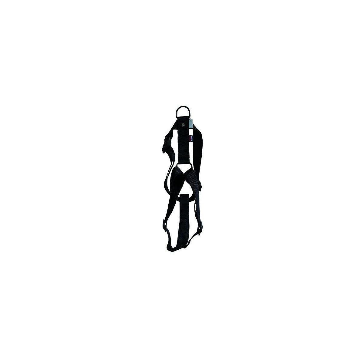 Harnais réglable pour chien en nylon. Coloris : noir. Boucle rapide et accessoires laqués noirs. Confort et maintien de l'animal. Partie renforcée sur le nylon pour la protection du ventre. Développe le physique du chien. Force de traction supérieur pour le chien. Dimensions : Largeur : 150 mm x Hauteur 26 cm.