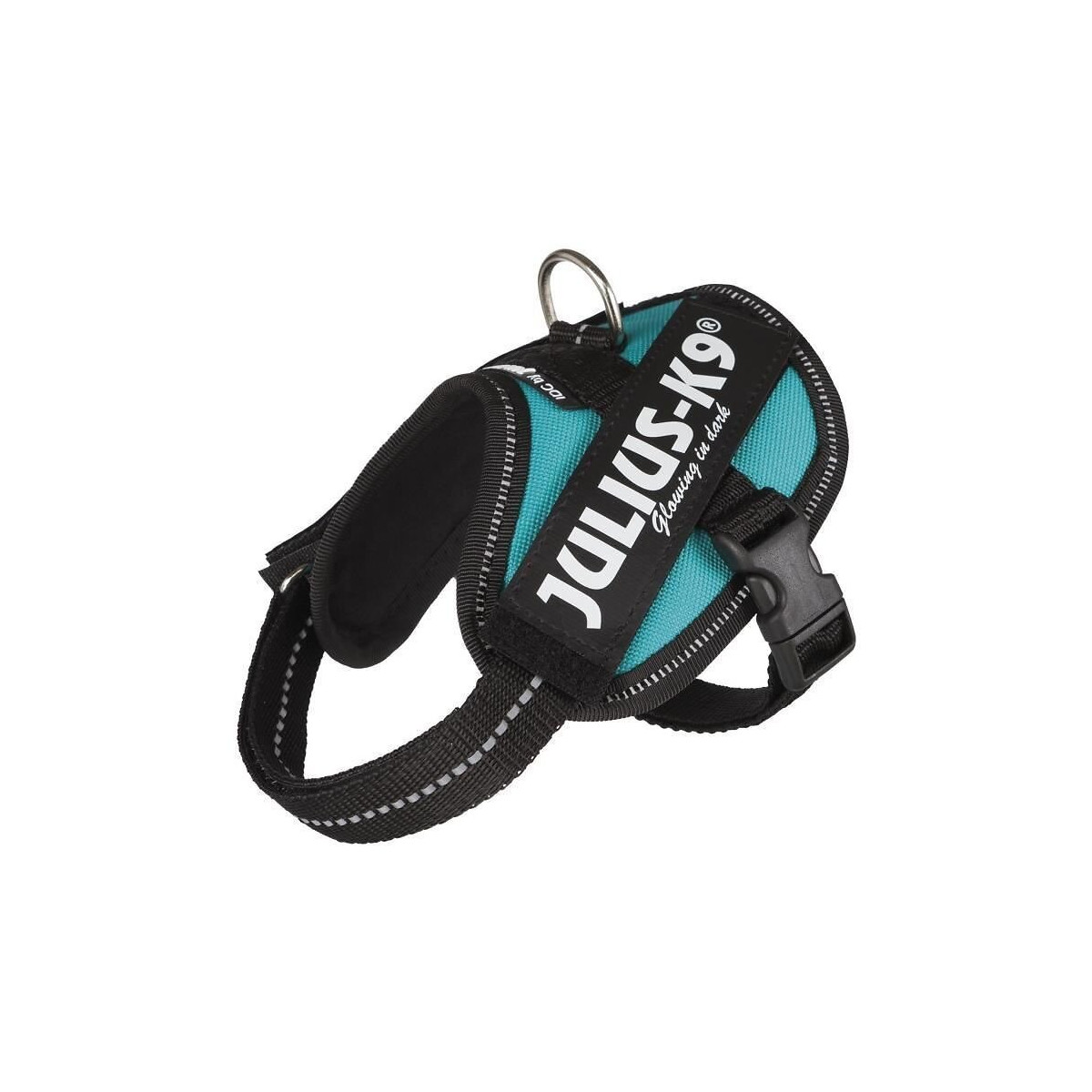Harnais Power Julius-K9® IDC - En nylon - Baby 2/XS-S : 33-45 cm/18 mm - Forme ergonomique - Tres robuste - Intérieur doux a la peau et respirant - Réglage intégral par sangles a la poitrine et au ventre - Coloris : pétrole - Pour chien.