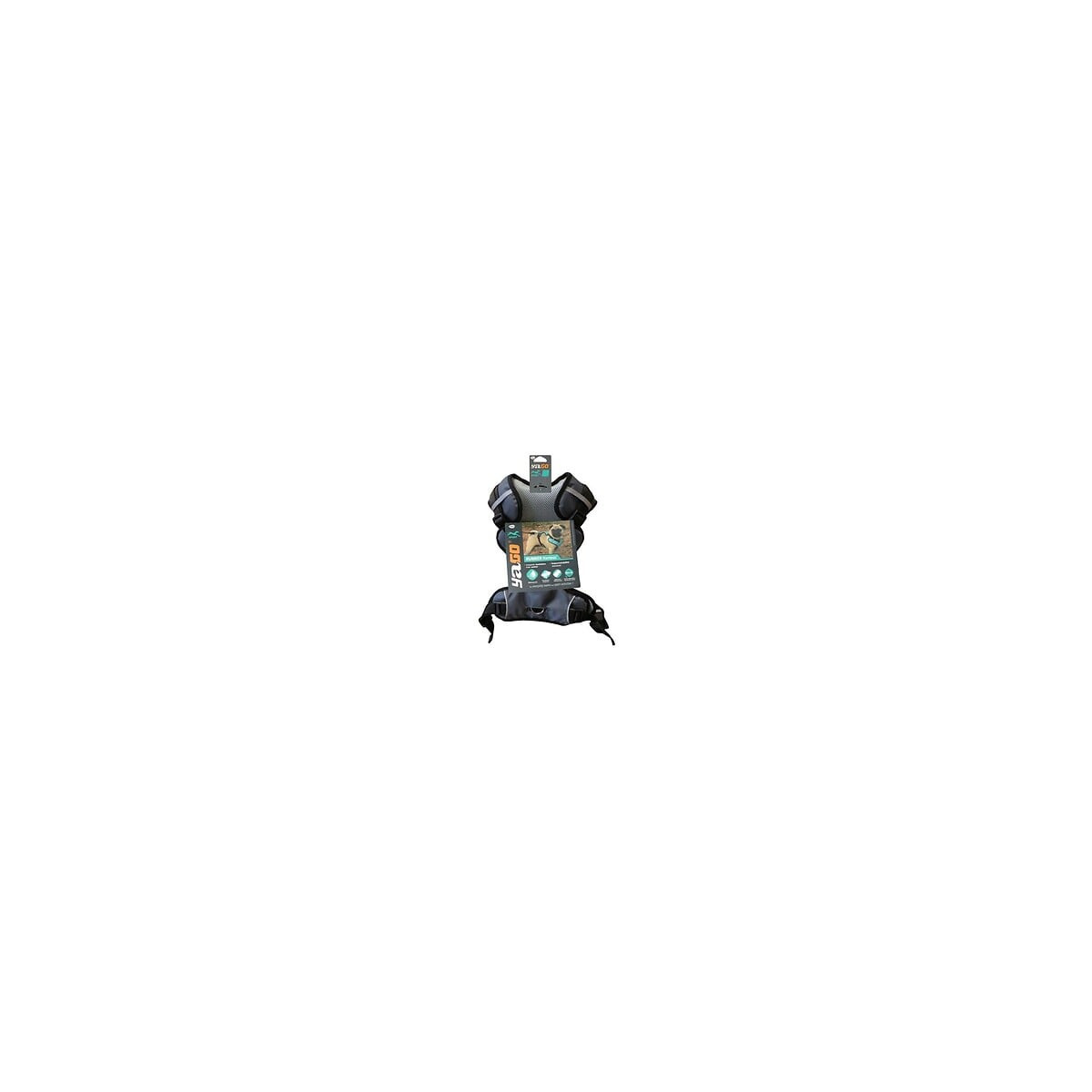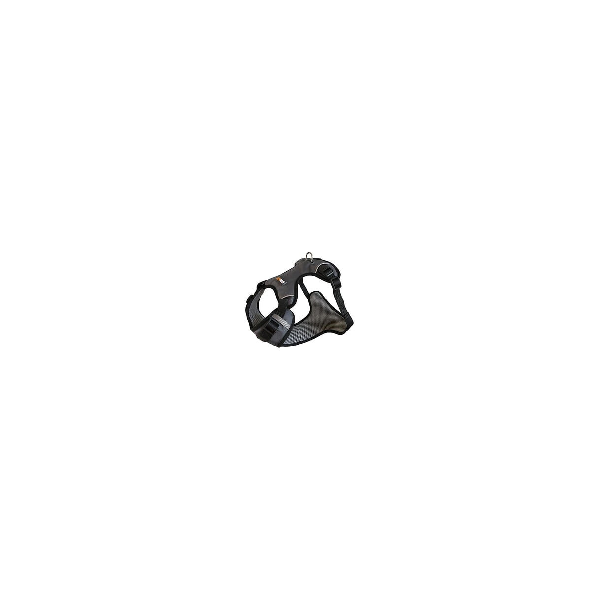 Harnais de sport gris : confortable, ajustable : partie ventrale élastique, englobe une bonne partie du dos et du poitrail, assure un maintien optimal. Anneau au niveau du dos : bonne traction pour la course, marche rapide. Tissu waterproof imperméable, respirant, bandes réfléchissantes. Tour de poitrail : 69-80cm