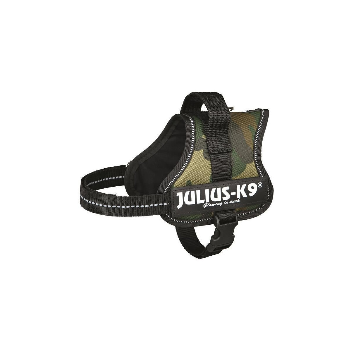 Harnais Power Julius-K9 - En nylon - Mini-Mini/S : 40-53 cm/22 mm - Forme ergonomique - Tres robuste - Intérieur en cuir véritable de haute qualité - Réglage intégral par sangles a la poitrine et au ventre - Coloris : camouflage - Pour chien.