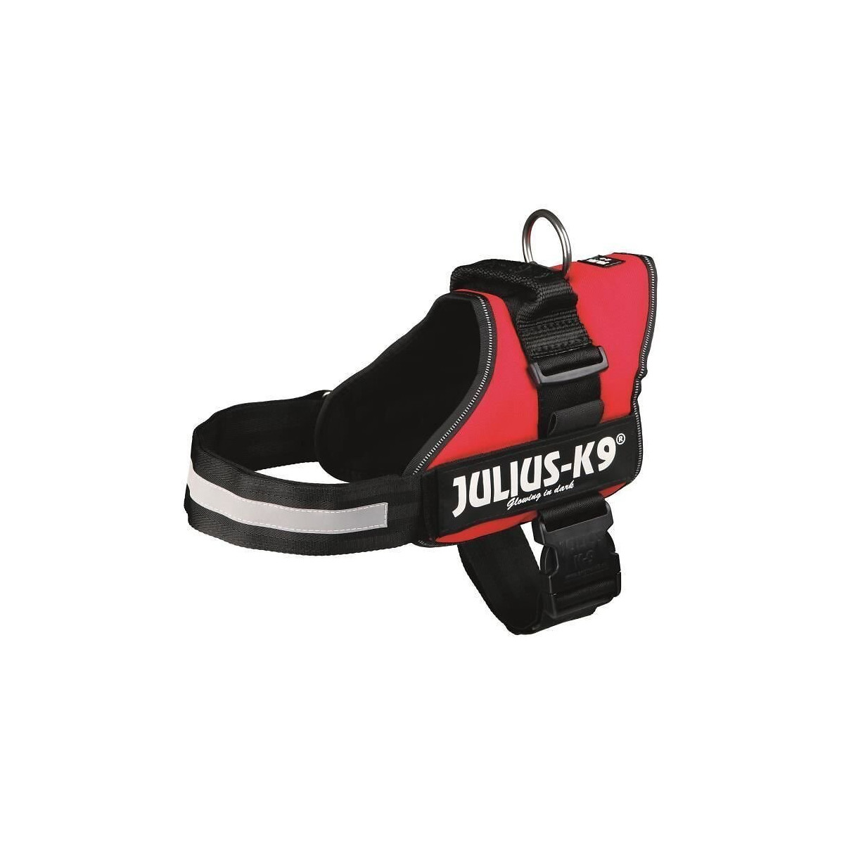 Harnais Power Julius-K9 - En nylon - 1/L : 66-85 cm/50 mm - Forme ergonomique - Tres robuste - Intérieur doux a la peau et respirant - Réglage intégral par sangles a la poitrine et au ventre - Sangle ventrale réfléchissante et bord de protection - Avec porte-lampe - Coloris : rouge - Pour chien.