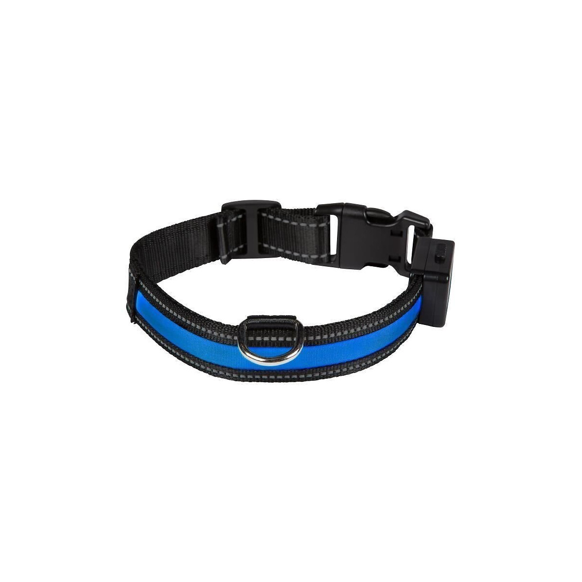 Collier lumineux rechargeable - En nylon résistant - Taille M - Apporte a votre chien plus de sécurité dans l'obscurité - Visible jusqu'a 500 m - Lumiere fixe ou clignotante - Environ 10 heures d'autonomie - Etanche a l'immersion - Câble USB fourni - Coloris : bleu - Pour chien.Spécifications techniques