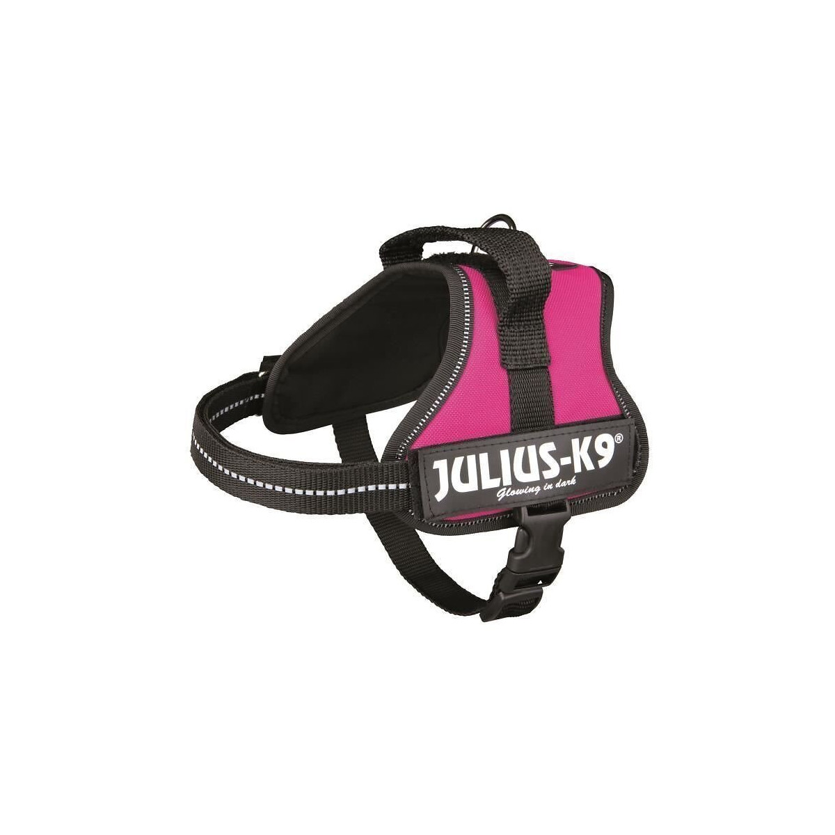 Harnais Power Julius-K9 - En nylon - Mini-Mini/S : 40-53 cm/22 mm - Forme ergonomique - Tres robuste - Intérieur en cuir véritable de haute qualité - Réglage intégral par sangles a la poitrine et au ventre - Coloris : fuchsia - Pour chien.