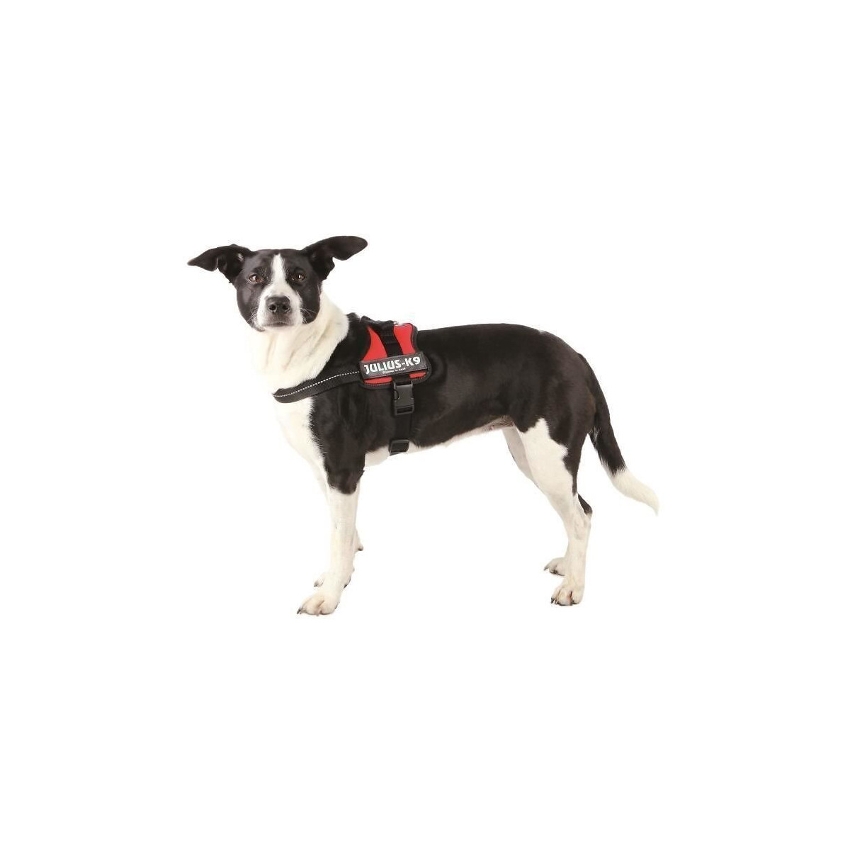 Harnais Power Julius-K9 - En nylon - Mini/M : 51-67 cm/28 mm - Forme ergonomique - Tres robuste - Intérieur en cuir véritable de haute qualité - Réglage intégral par sangles a la poitrine et au ventre - Coloris : rouge - Pour chien.