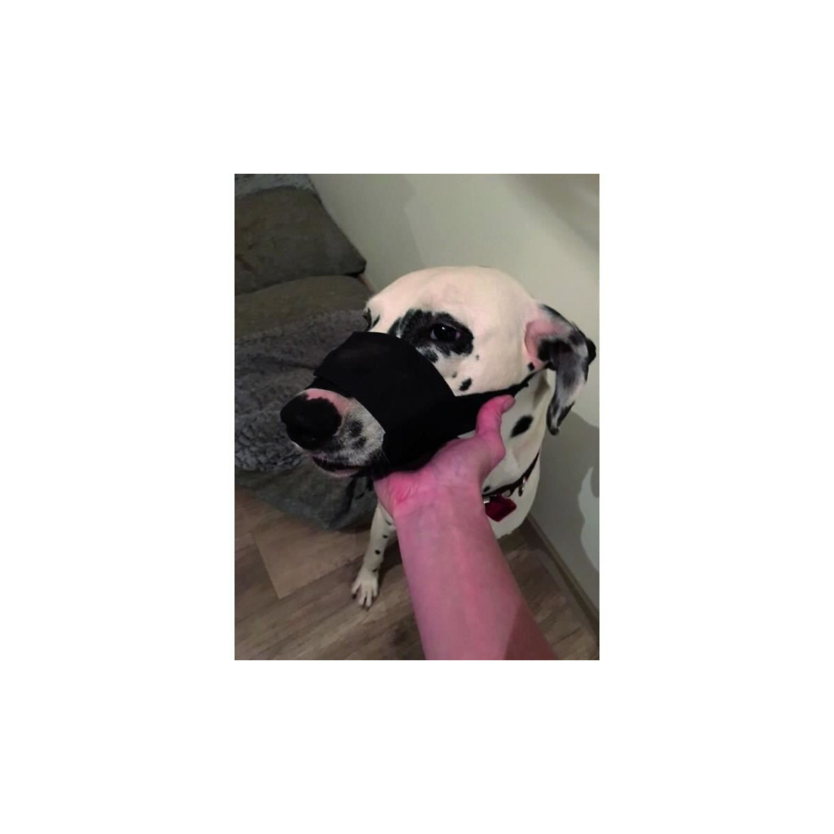 Museliere noire pour tres grand chien : évite au chien d'aboyer, mordre, mâcher, ronger, lui permet de continuer a boire, haleter. Partie en filet : respirant, agréable. Tour de cou et museau réglable : pratique, confortable. Facile a mettre, a ranger, légere, lavable en machine. Idéale pour des courtes durées.